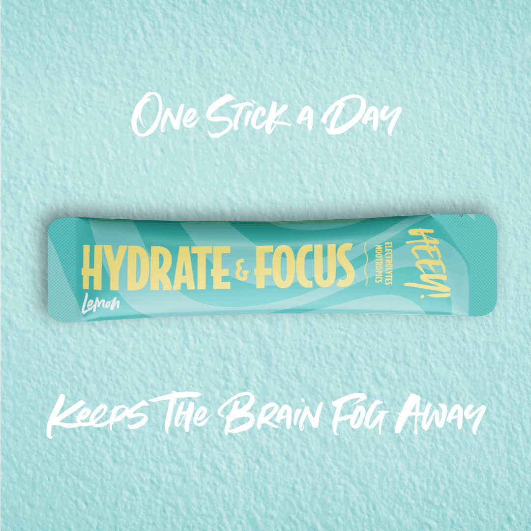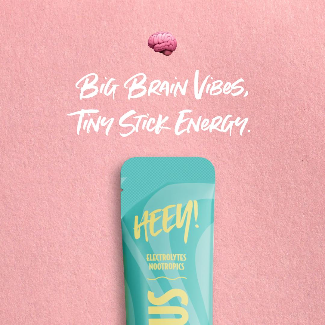💧 Heey! Hydrate & Focus – til både krop og hovedElektrolytblanding med Planteekstrakter, Nootropiske Ingredienser og B-vitaminer.