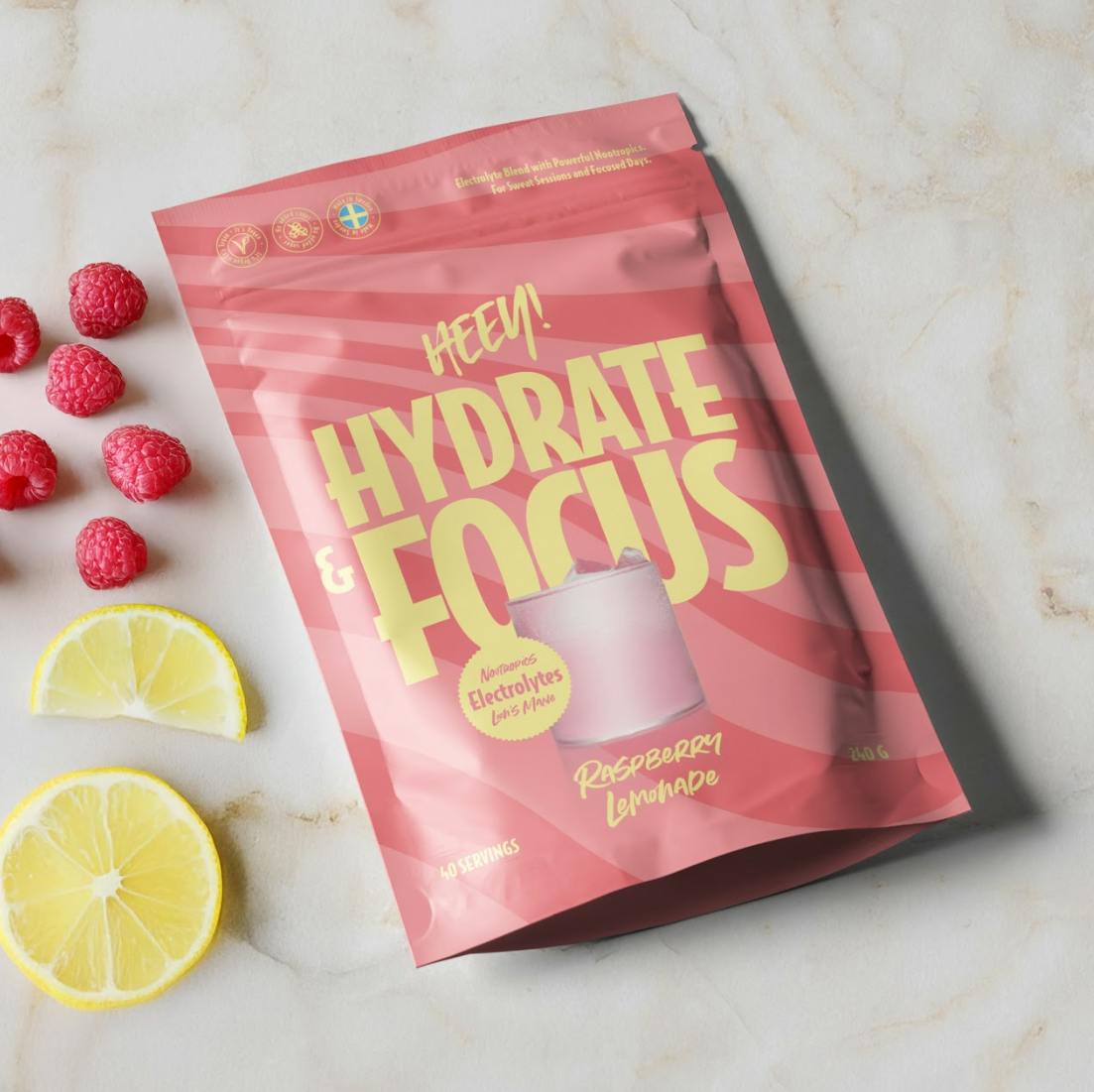 Heey! Hydrate & Focus fås både som genlukkelig pose til daglig brug og som praktiske stick packs, klar til farten.