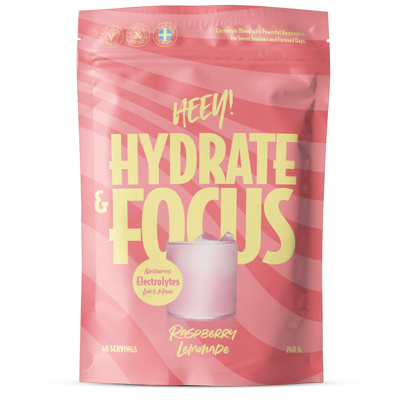 Heey! Hydrate & Focus kombinerer nøje udvalgte elektrolytter og B-vitaminer med plantebaserede ingredienser, der længe har været anvendt i funktionelle drikke og fokusblandinger. En oplagt del af din daglige rutine – før, under eller efter aktivitet.