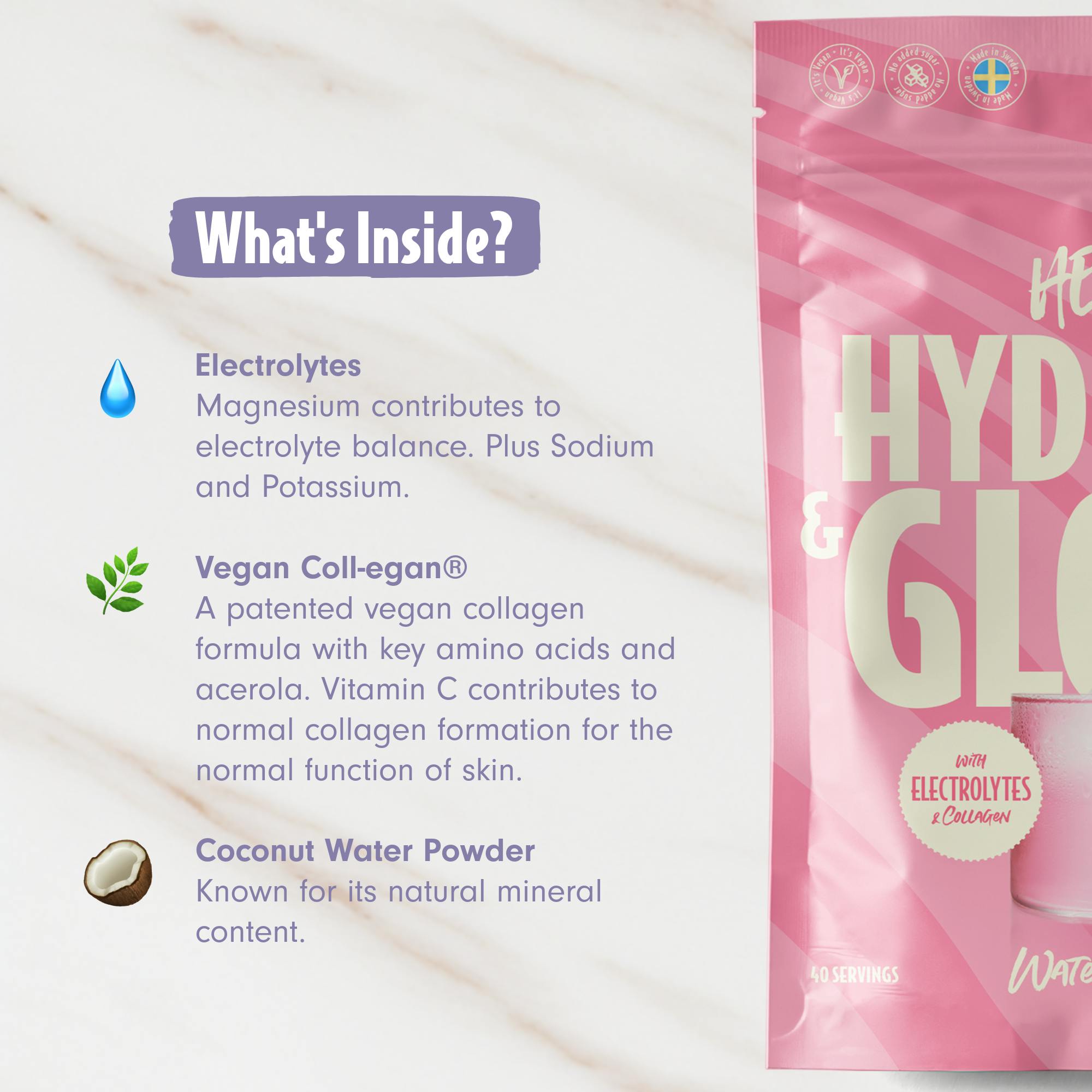 Heey! Hydrate & Glow er et unikt elektrolyttilskud, der kombinerer væskebalance med skønhedsstøtte – perfekt til den sundhedsbevidste, der ønsker både fysisk velvære og udstråling.