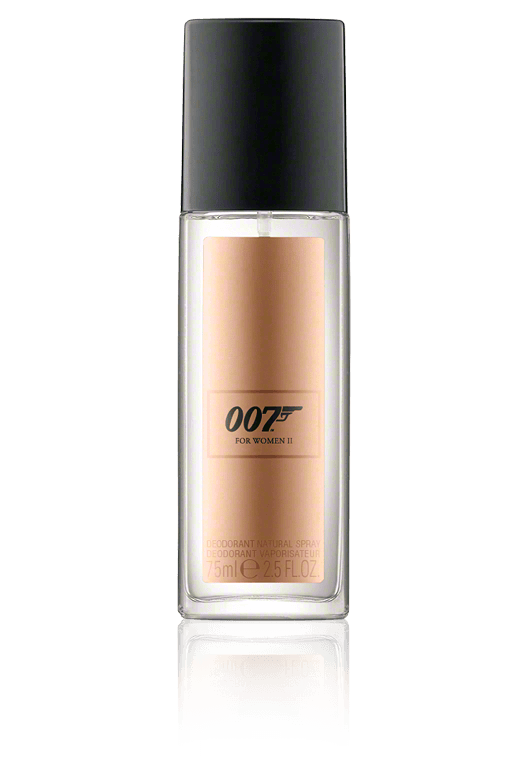 James Bond 007 For Women II deodorant spray giver dig en friskhed under armene, og tilfører dig den energi du har brug for. Deodoranten har en duft, som bringer den mystiske og gådefulde side af dig frem. Duften indfanger den intense styrke gennem et mix af ingredienser fra fresia blomster, gardenia, søde hindbær, pink peber, moskus, cremet vanilje, sandeltræ og cedertræ.
