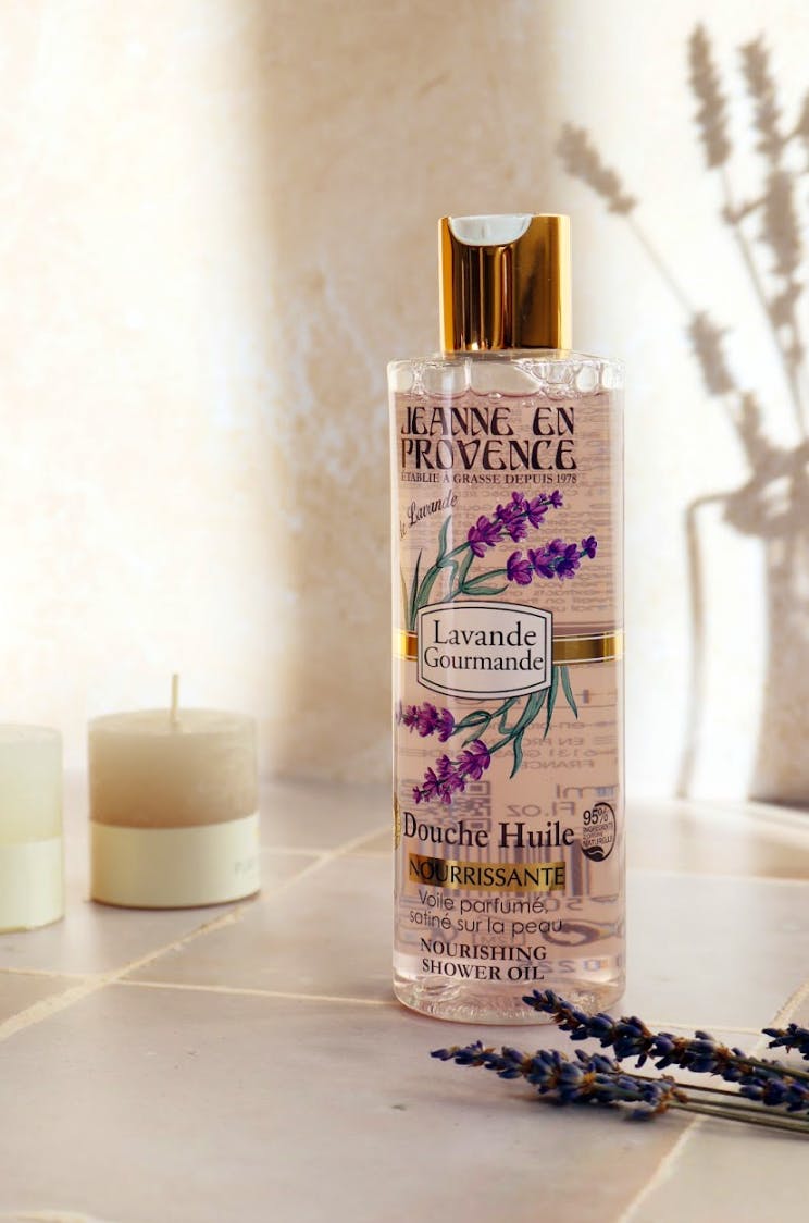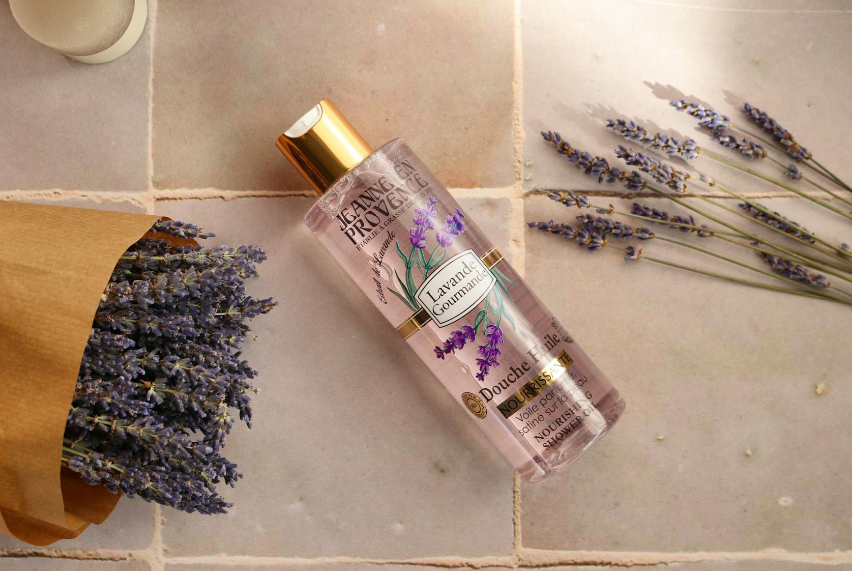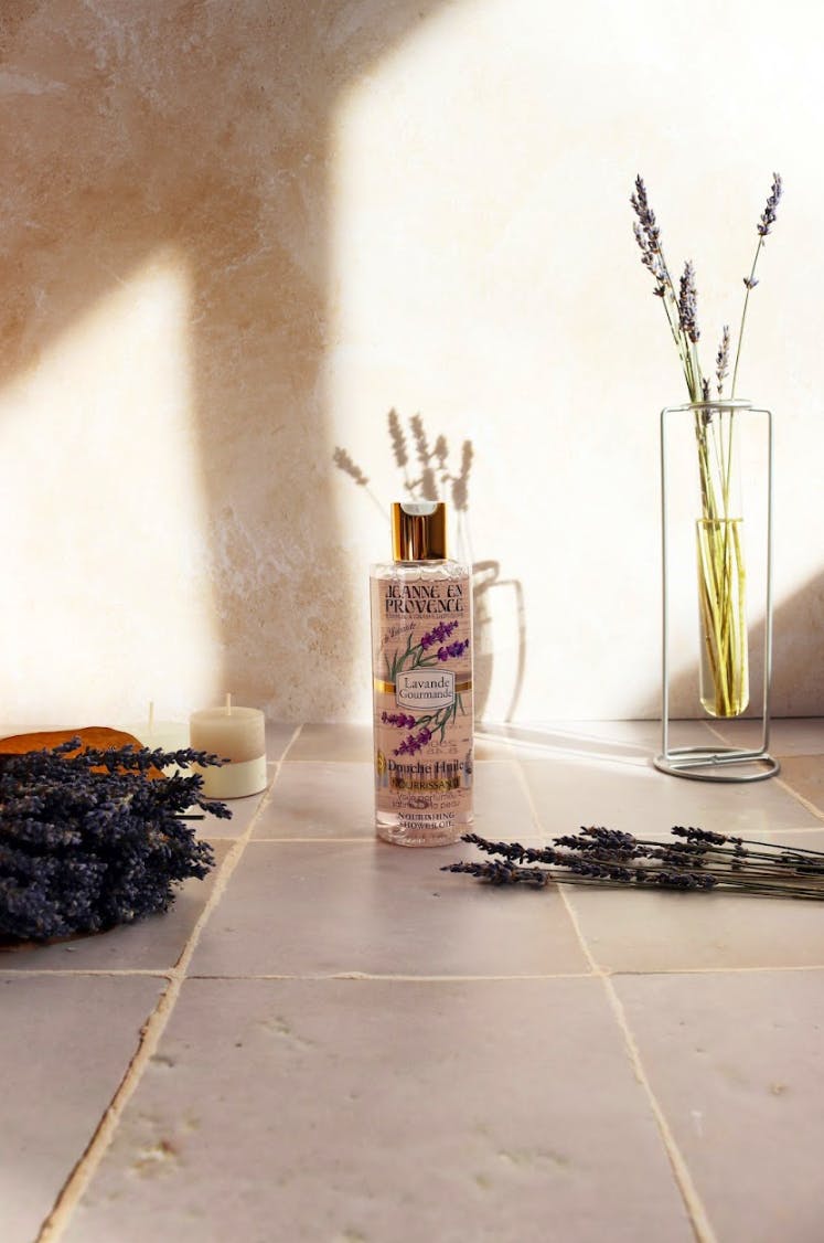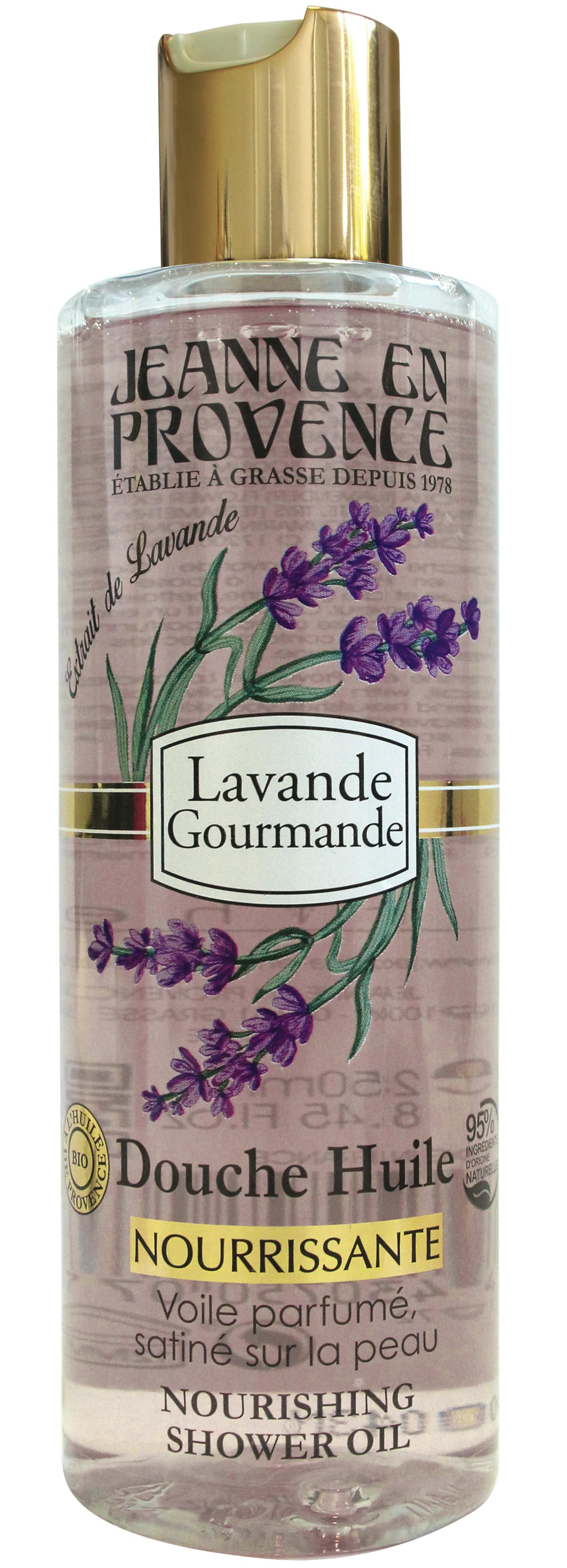 Jeanne en Provence Lavender Shower Oil er en luksuriøs badeolie, der kombinerer de nærende egenskaber fra økologisk olivenolie og glycerin med den beroligende duft af naturlige lavendel-ekstrakter.