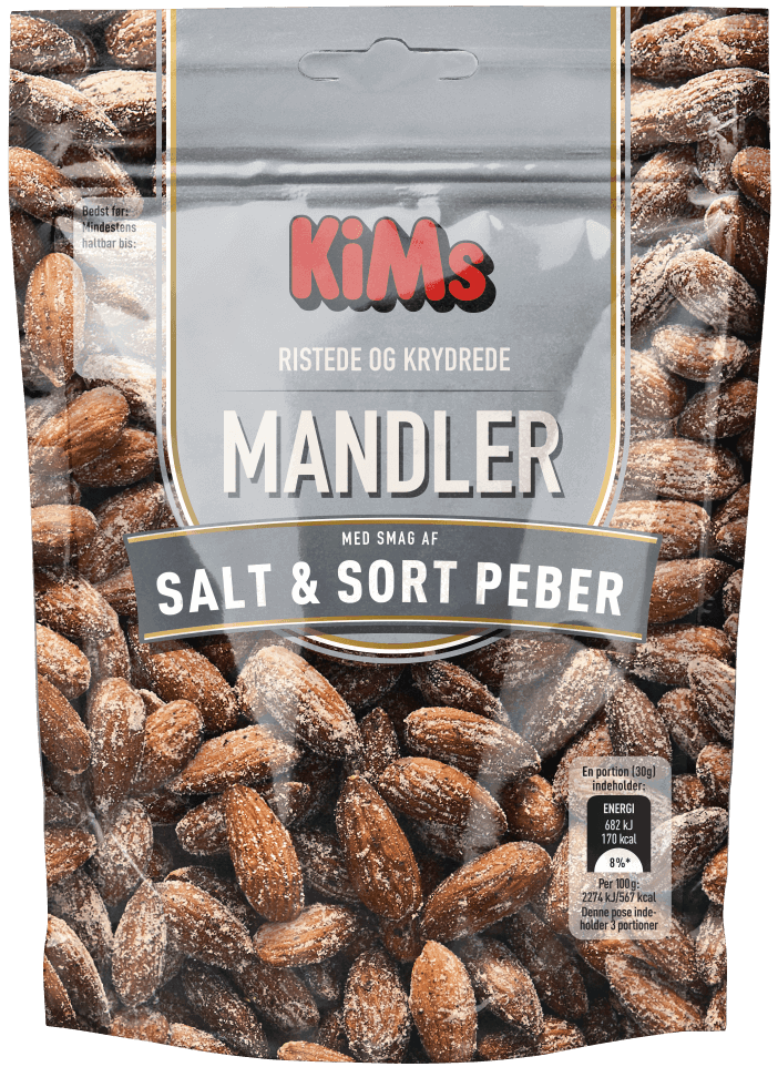 Prøv disse Ristede Mandler Salt & Sort Peber fra Kims.