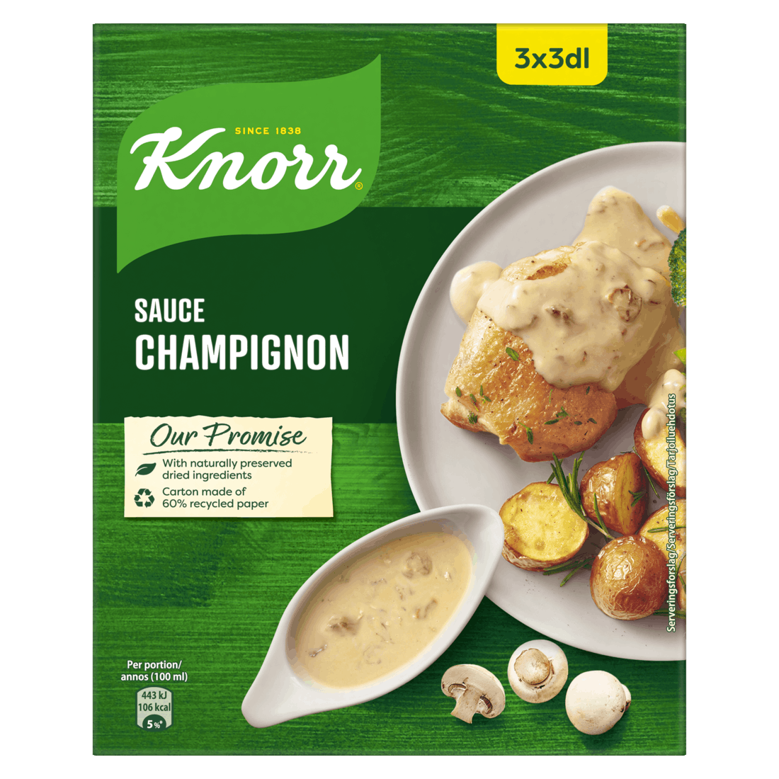 Champignon Sauce fra Knorr er den perfekte ledsager til dine måltider.