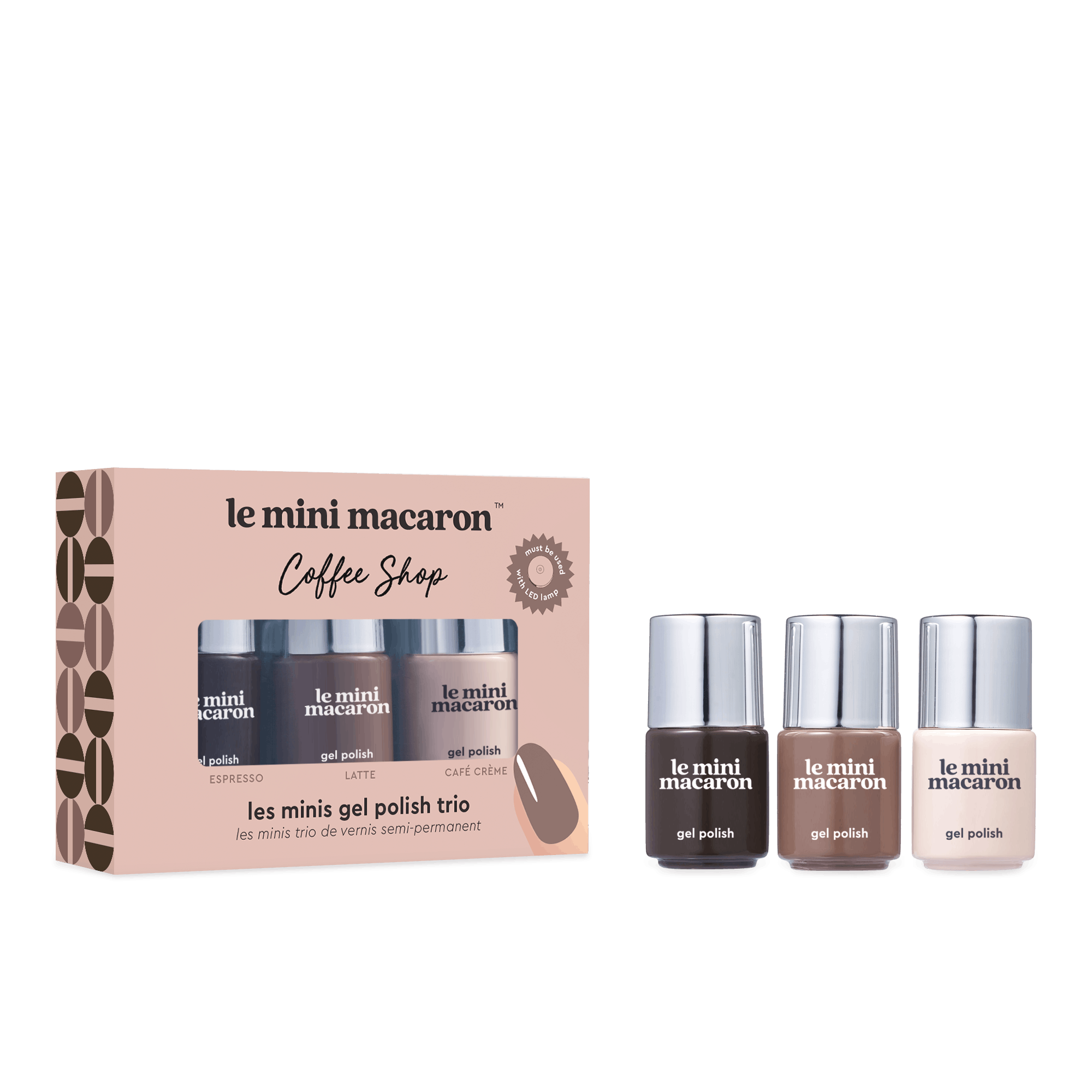 Les Minis Coffee Shop fra Le Mini Macaron er den perfekte gave til dig selv eller en kaffeelsker i dit liv. Denne søde lille pakke indeholder tre forskellige kaffeduftende neglelakker i praktiske 4 g flasker. Med Les Minis Coffee Shop kan du skabe en unik og trendy neglelook, der passer perfekt til din kaffeafhængighed. De tre forskellige farver giver dig mulighed for at skifte mellem en varm espresso-brun, en cremet latte-nude og en frisk cappuccino-beige, alt efter humør og anledning. Disse neglelakker er ikke kun smukke at se på, de er også af høj kvalitet og lette at påføre. Deres formel sikrer en jævn og fejlfri påføring, der holder i lang tid. Du behøver ikke at bekymre dig om at skulle rette fejl eller omlakere dine negle hele tiden. Med Les Minis Coffee Shop får du ikke kun smukke negle, men også en følelse af luksus og velvære. Du kan nyde duften af friskbrygget kaffe, mens du forkæler dig selv med en lille manicure-session derhjemme. Det er den perfekte måde at starte dagen på eller slappe af efter en lang dag. Så hvis du er en kaffeelsker eller kender en, der er det, så er Les Minis Coffee Shop et must-have. Forkæl dig selv eller giv en unik gave, der vil bringe glæde og stil til hverdagen.