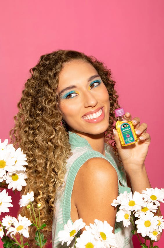 Camomila Óleo Iluminador fra Lola Cosmetics er en luksuriøs hårolie og serum, der fremhæver den naturlige skønhed i blondt hår.