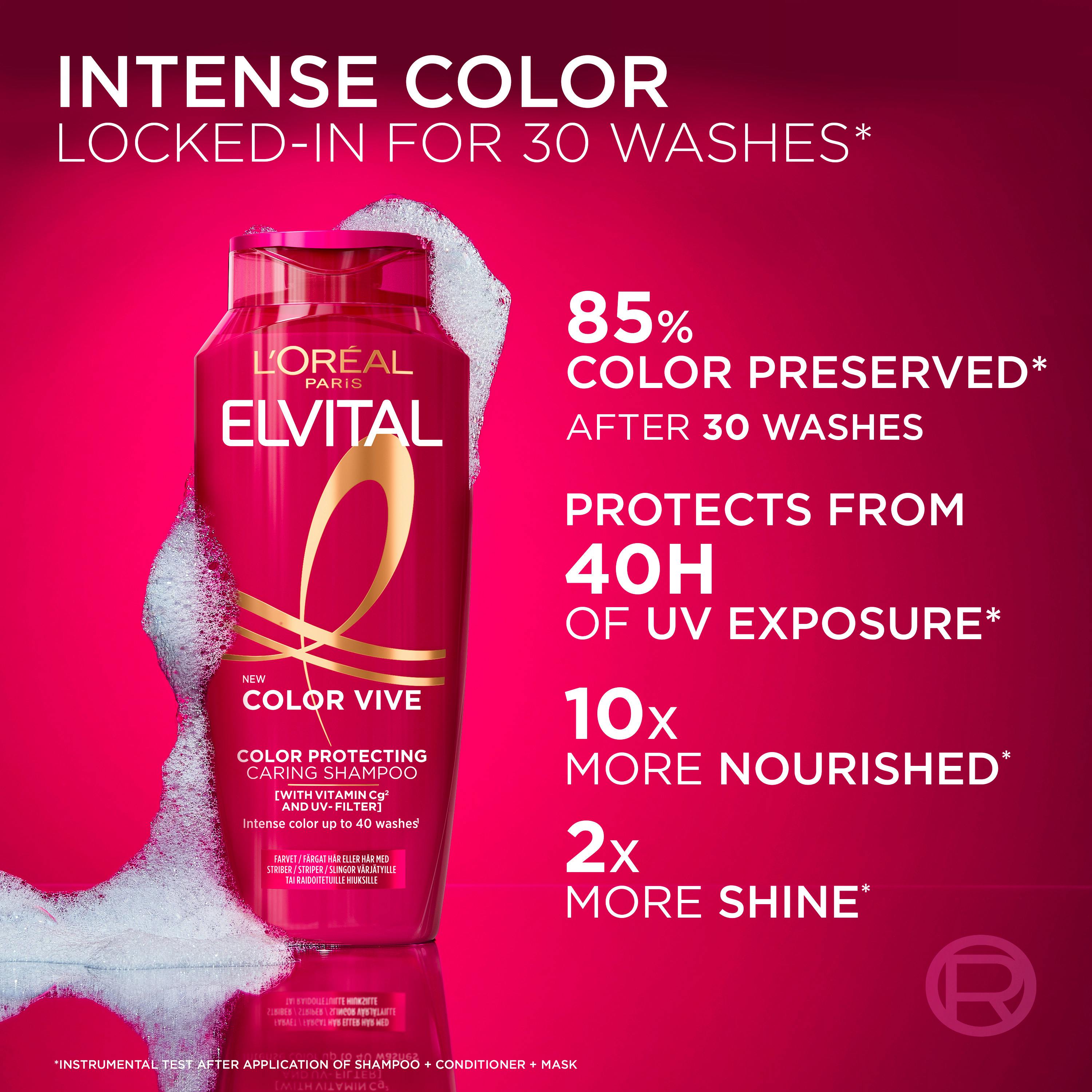 Elvital Color Vive Shampoo fra L'Oréal Paris er en fantastisk løsning til dig, der ønsker at bevare din hårfarve strålende og levende i længere tid.