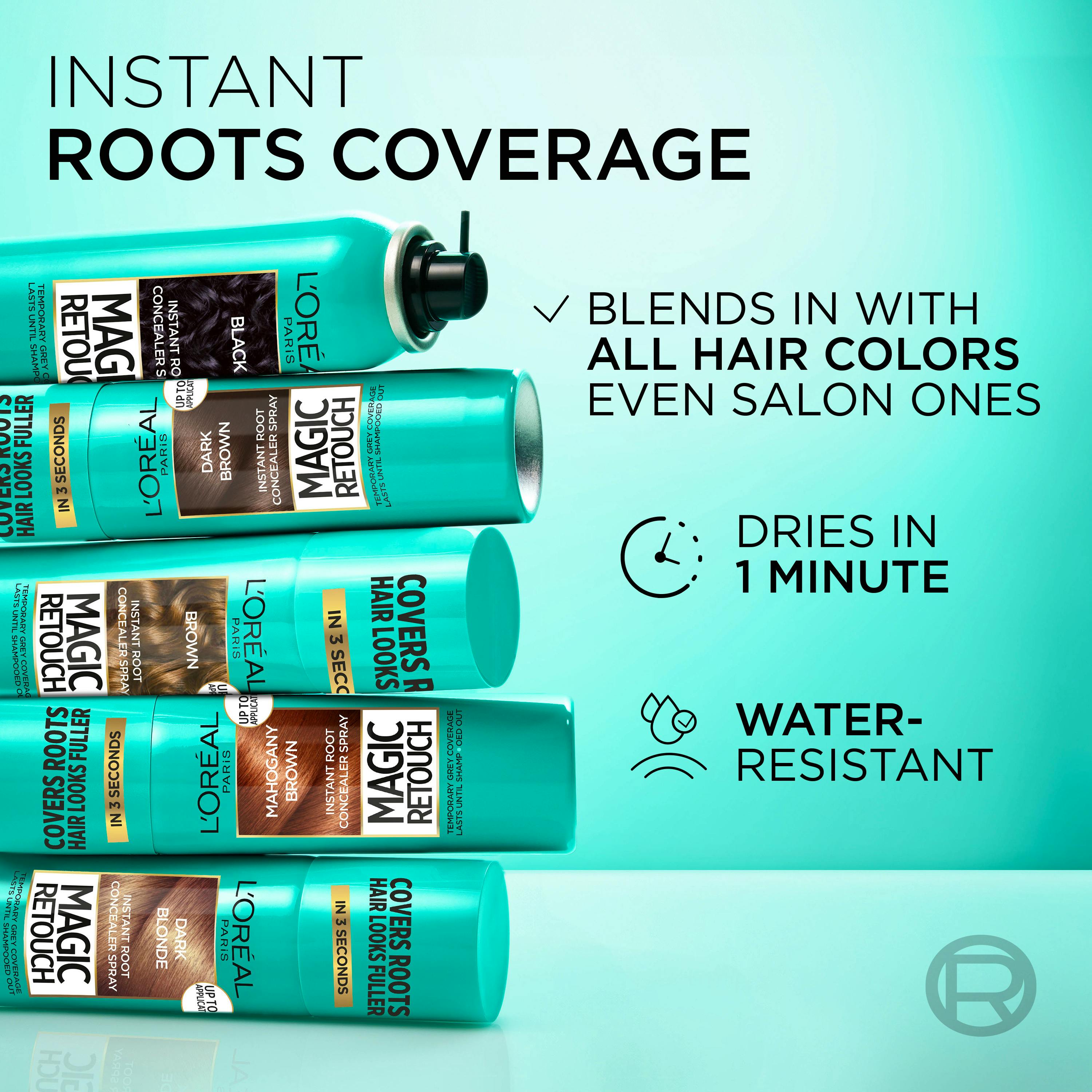 L'Oréal Paris Magic Retouch Roots 4 Dark Blonde 75ml lader dig farve udgroning med professionelle resultater. En udgroningsspray, der bruges direkte i tørt hår og øjeblikkeligt dækker både mørke rødder og grå hår. Med Magic Retouch Spray får du et perfekt match til en mørkeblond hårfarve og en fejlfri og naturlig finish. Og det bedste af det hele? Det smitter ikke af! Vælg Magic Retouch Roots, og nyd en frisk hårfarve indtil næste hårvask.