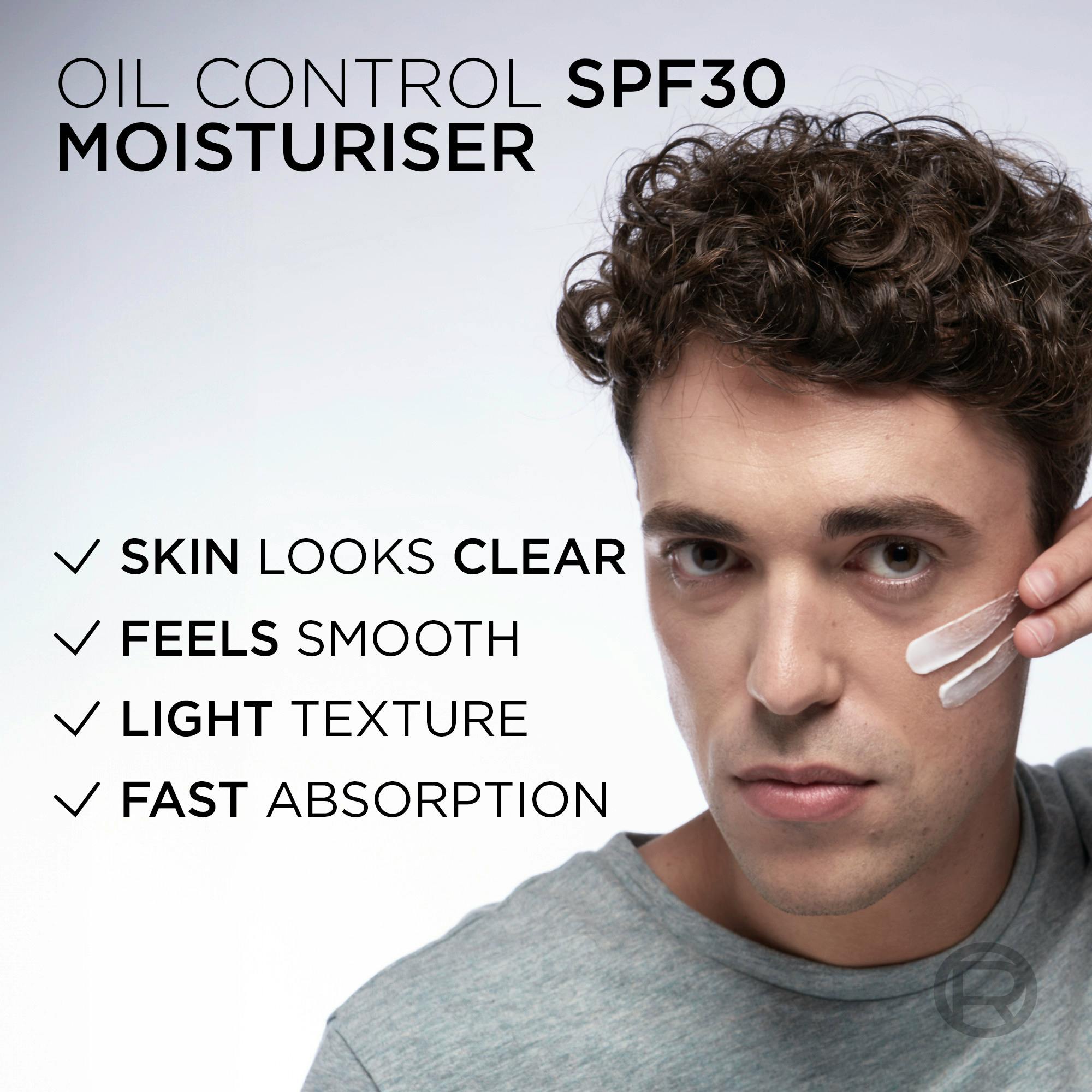 L'Oréal Paris Men Expert Derma Control SPF30 Oil-Control Moisturiser er en ansigtscreme med niacinamid til alle hudtyper, Formlen beskytter din hud med SPF30, kontrollerer hudens produktion af olie, fugter, reducerer porer samt får din hud til at føles jævn og spændstigere, Velegnet til sensitiv hud,