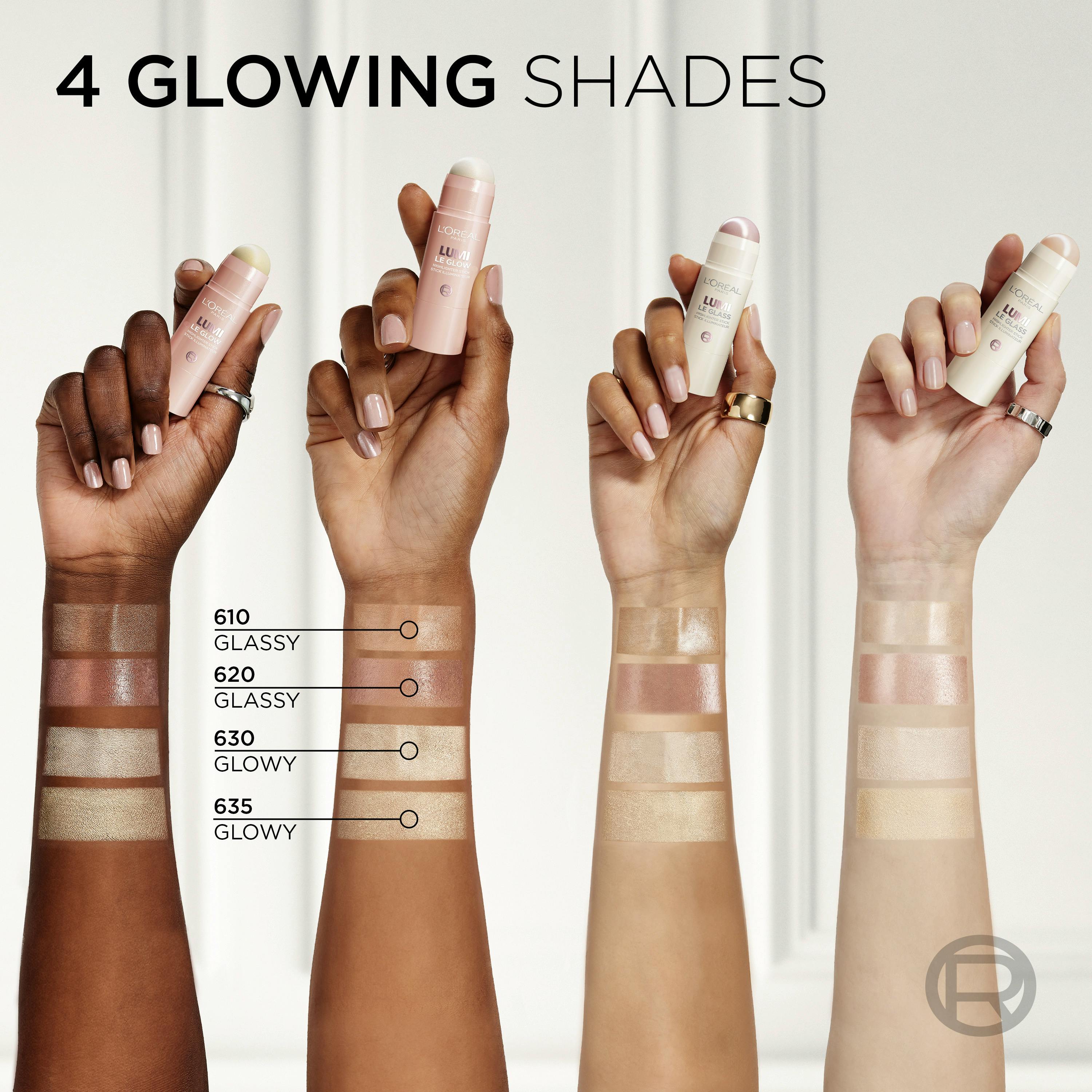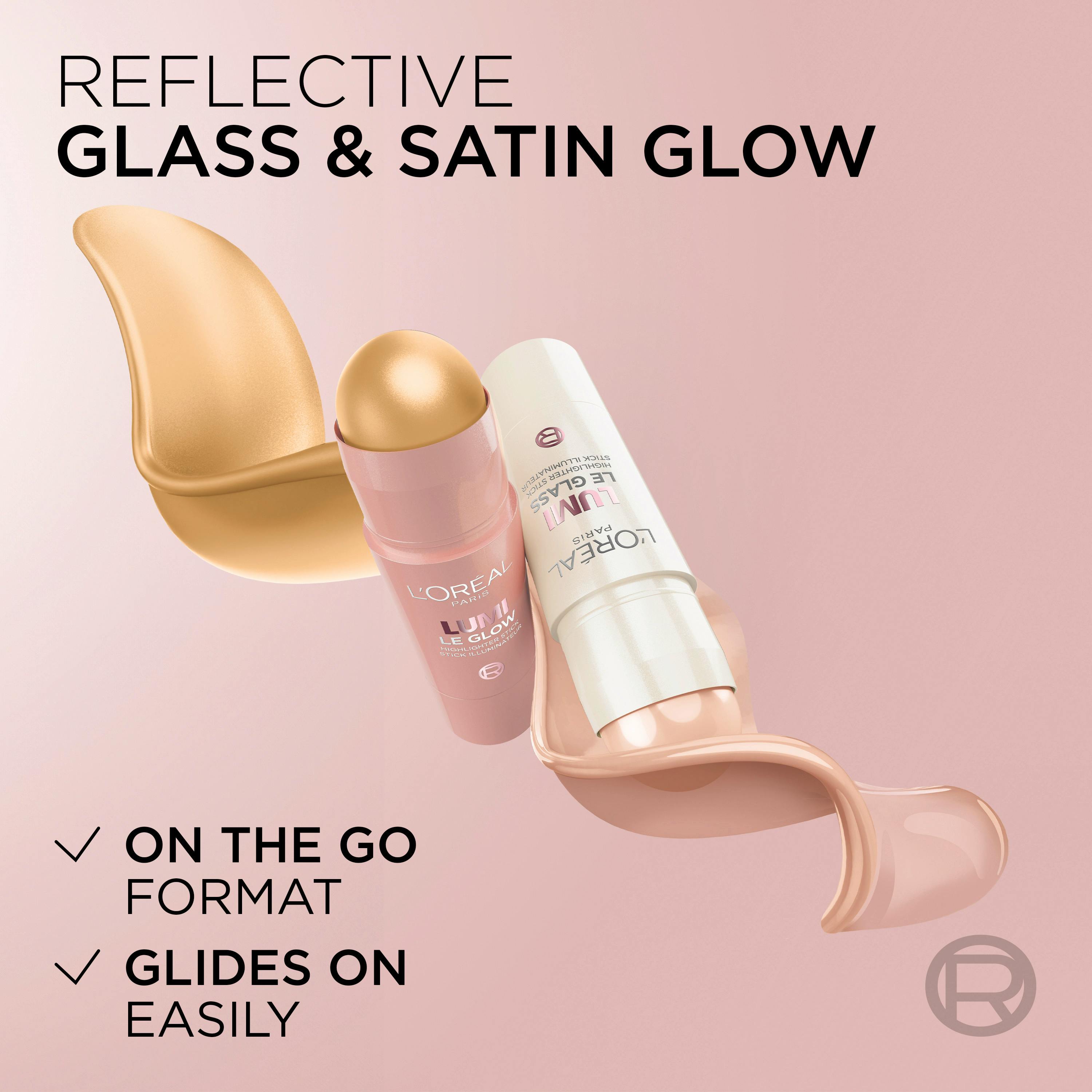 L'Oréal Paris Lumi Le Glow er en cremet highlighterstick som reflekterer lyset for maksimal glød, Den vægtløse formel glider nemt på huden og giver øjeblikkeligt en smuk satinlignende glød,