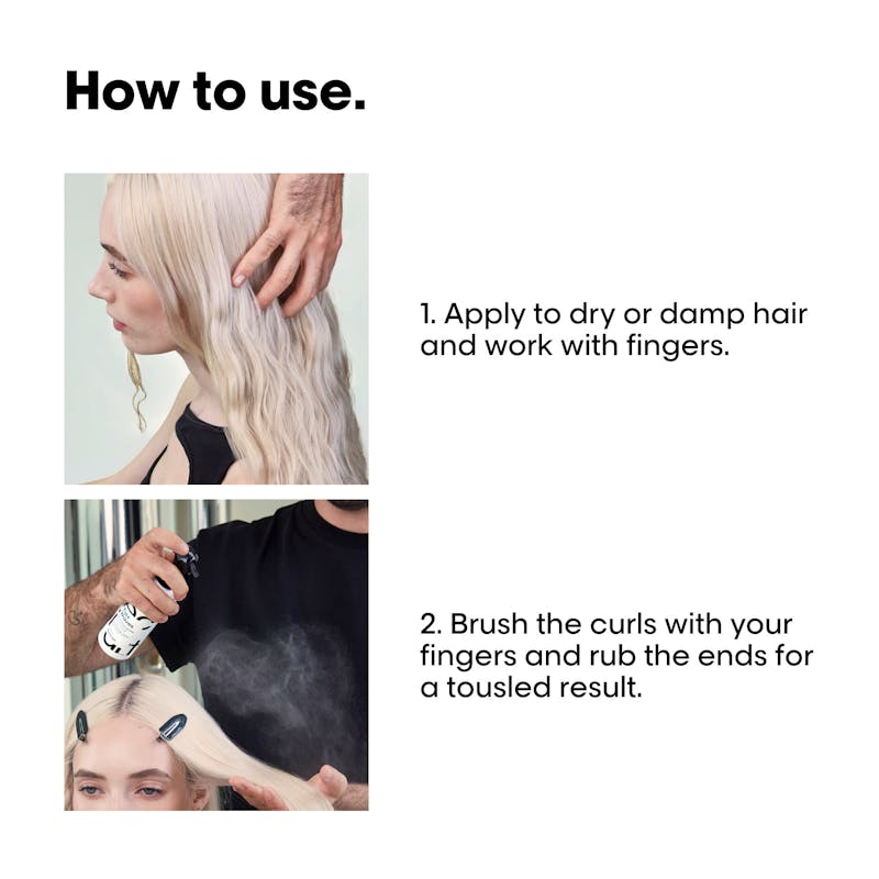 For at bruge Tecni.art Flex Waves Spray, skal du spraye den på fugtigt eller tørt hår, med fokus på længderne og spidserne for at opnå det bedste resultat. Kram håret forsigtigt for at fremme bølgerne, eller brug en diffuser for mere definerede krøller. Denne spray er ideel til at skabe ubesværede, naturlige frisurer, der holder hele dagen. Uanset om du skal på kontoret eller har en afslappet dag foran dig, hjælper denne saltvandsspray dig med at opnå et afslappet, men alligevel velplejet look med lethed.