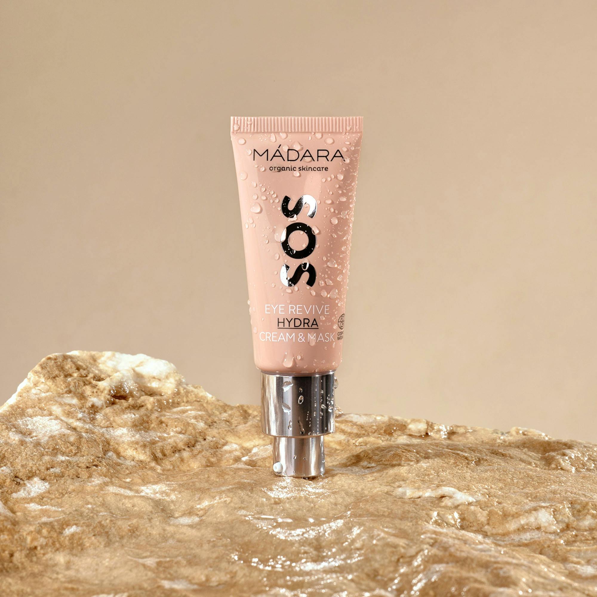 SOS Eye Revive Cream And Mask fra MÁDARA er den ultimative redning til trætte øjne.