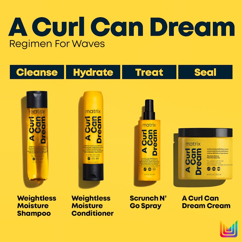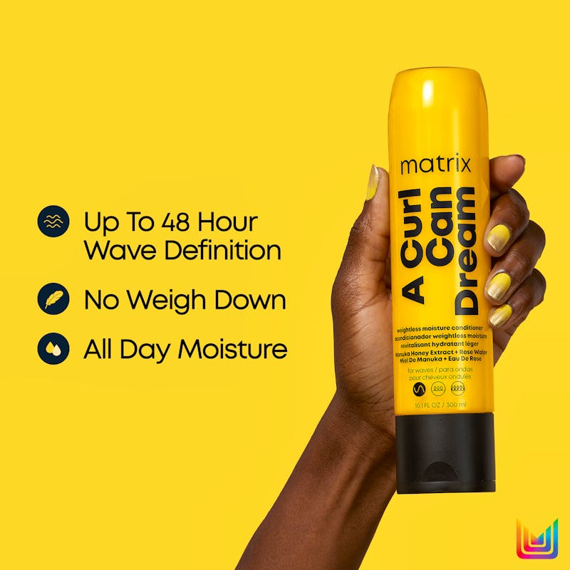 Sig farvel til nedtynget hår: Matrix A Curl Can Dream Weightless Moisture Conditionerer en cremet og let conditioner, der er skabt til bølget hår.