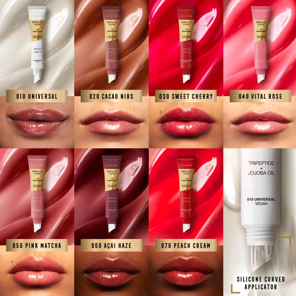 Fugt, plej og glød med Max Factor Miracle Pure Lip Enhancer, en plejende, gennemsigtig læbepomade med en blank finish.