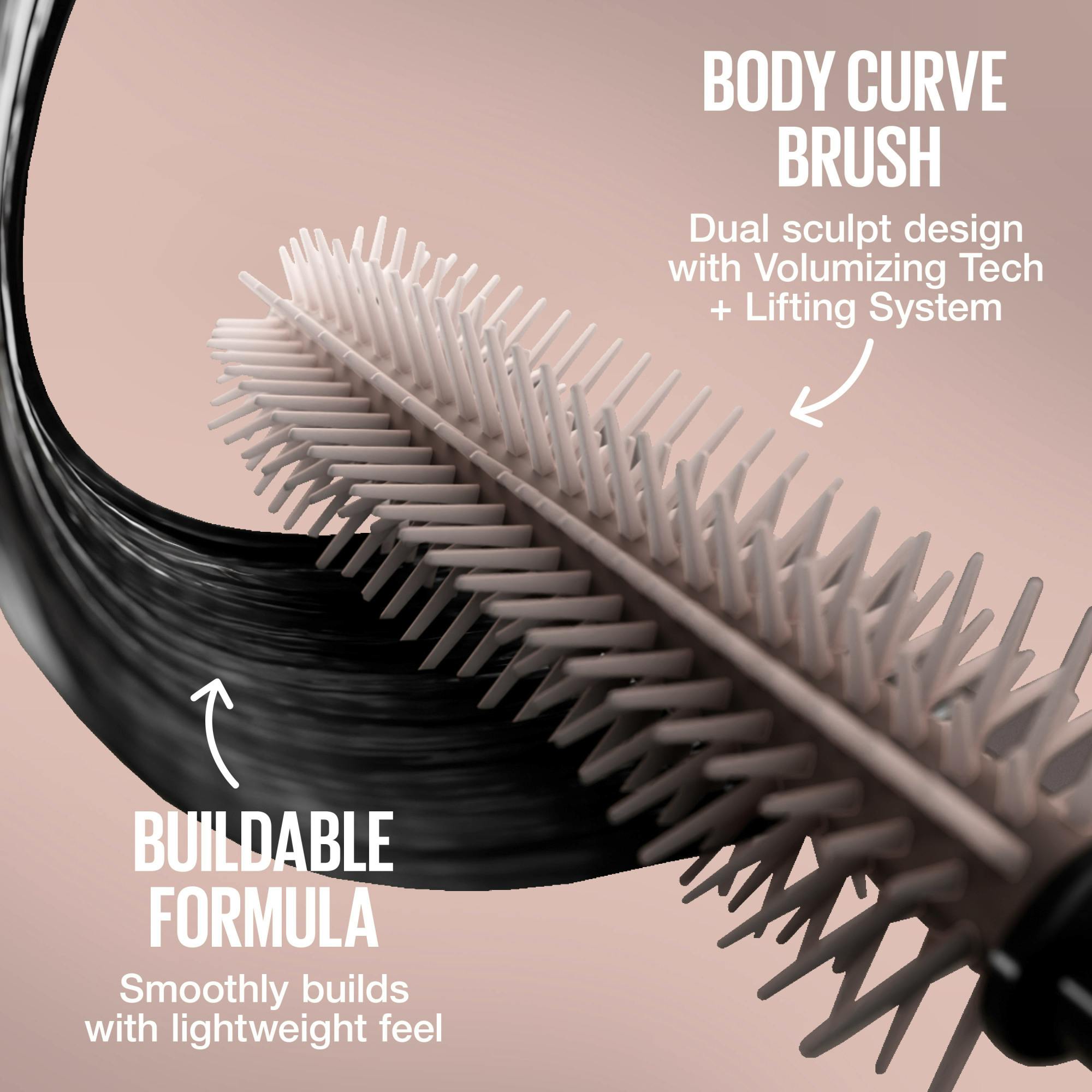 Maybelline New York Lash Sensational Body Waterproof Mascara giver skulpturel volumen og et løft der holder. Den opbyggelige formel lader dig tilpasse lookets intensitet, fra naturlig skønhed til enestående volumen -altid uden klumper. Den timeglasformede Body Curve-børste, med sit unikke dobbeltspiraldesign, er udviklet til at give volumen og et varigt løft.