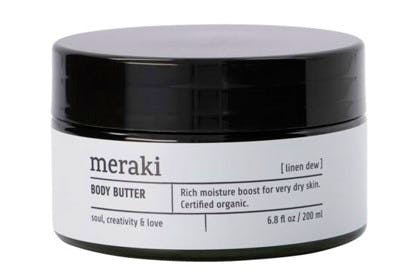 Body Butter Linen Dew fra Meraki er en lækker og nærende kropscreme, der vil forkæle din hud og efterlade den silkeblød og velplejet.