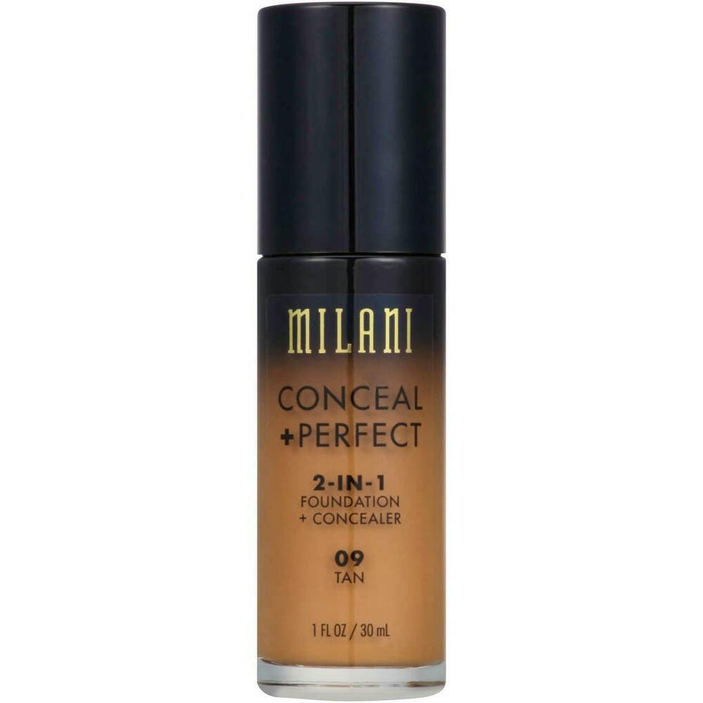Conceal + Perfect 2in1 Foundation + Concealer 09 Tan fra Milani er et fantastisk produkt, der kombinerer foundation og concealer i én flaske.