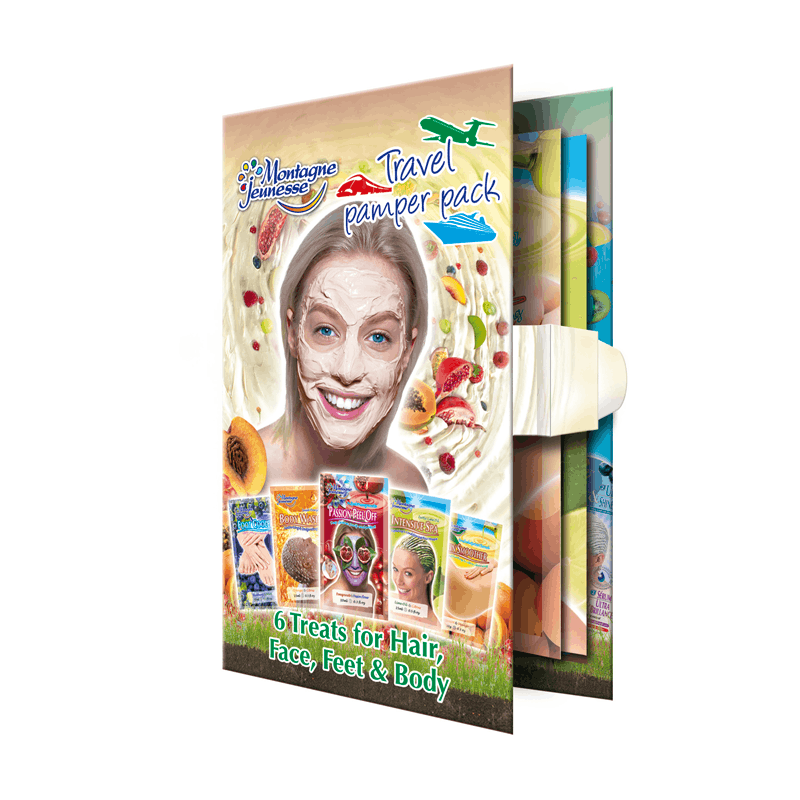 Introducerer Travel Pamper Pack 6-pak - en luksuriøs Giftbox fra Montagne Jeunesse.