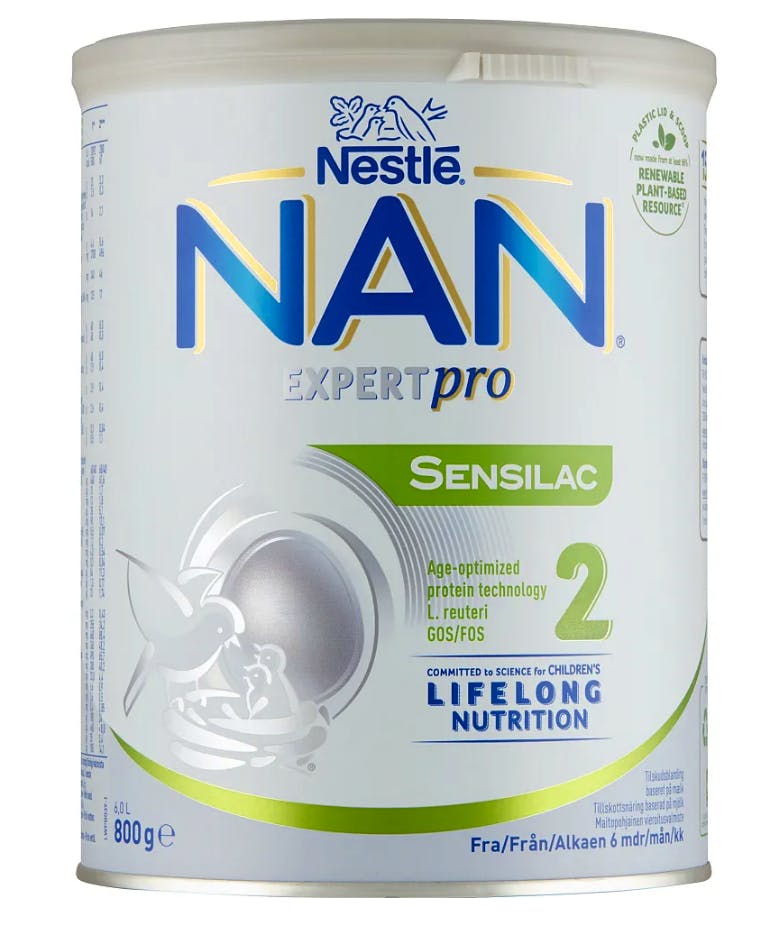 Sensilac 2 fra NAN er en nærende og velsmagende modermælkserstatning, der er specielt udviklet til at opfylde ernæringsbehovene hos spædbørn fra 6 måneder og op.