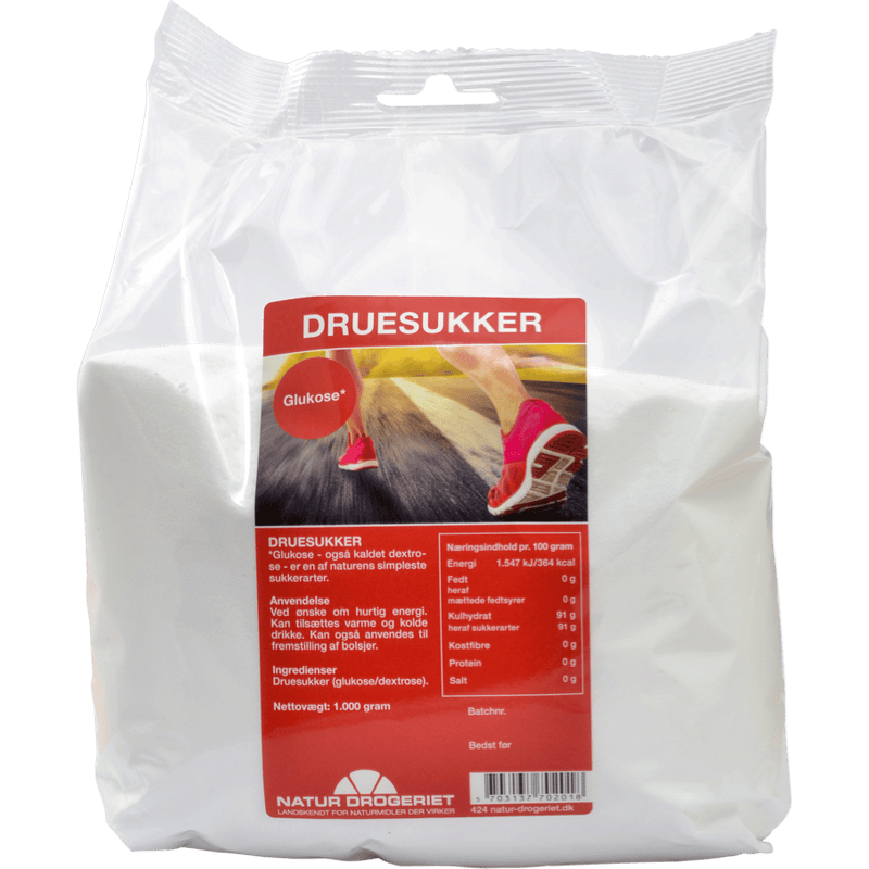 Natur Drogeriet Druesukker er glukose, der også går under navnet dextrose, og er almindelig kendt når vi ønsker at tilfører hurtig energi.