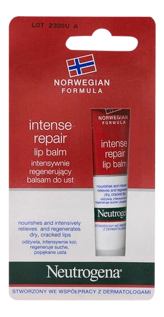 Intense Repair Lip Balm fra Neutrogena er en læbepomade, som plejer sarte og tørre læber. Med Neutrogenas Intense Repair Lip Balm er dine læber beskyttet mod udtørrende vejrtyper og tørt indeklima. Læbepomaden er neutral i udseende samt smag og kan anvendes af begge køn. Prøv denne plejende læbepomade og sig farvel til tørre og sprukne læber. Neutrogena Intense Repair Lip Balm indeholder 15 ml.