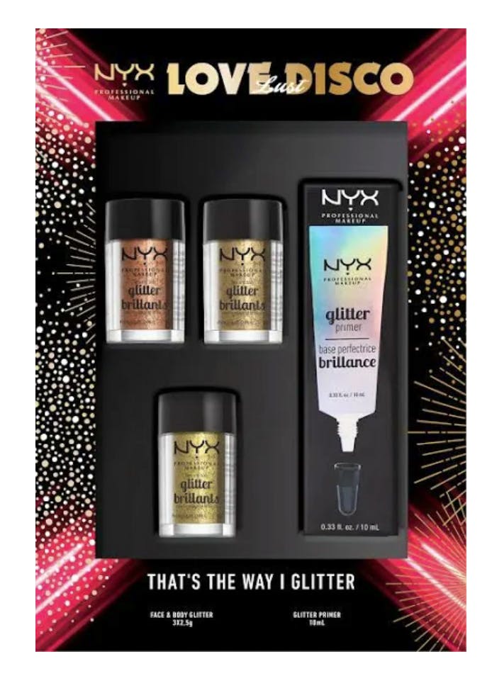 Love Lust Disco Glitter Set Lust fra NYX er det perfekte sæt til at tilføje lidt ekstra glans og glimmer til din makeup.