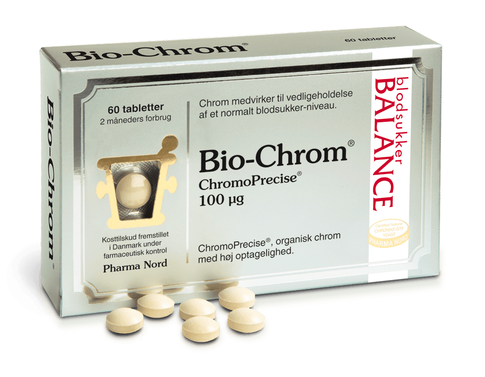 Pharma Nord Bio-Chrom ChromoPrecise er et kosttilskud, som indeholder 100 µg organisk chrom, der er bundet til gærens naturlige aminosyrer. Kosttilskuddet sikrer en normal vedligeholdelse af et normalt blodsukkerniveau og medvirker samtidig til en normal omsætning af kostens makronæringsstoffer. Den anbefalet daglig dosis er 1 tablet dagligt i forbindelse med et måltid eller et glas vand. Den anbefalede daglige dosis bør ikke overskrides, og bør ikke anvendes af gravide eller børn under 1 år uden aftale med en læge. Denne pakke indeholder 60 stk.
