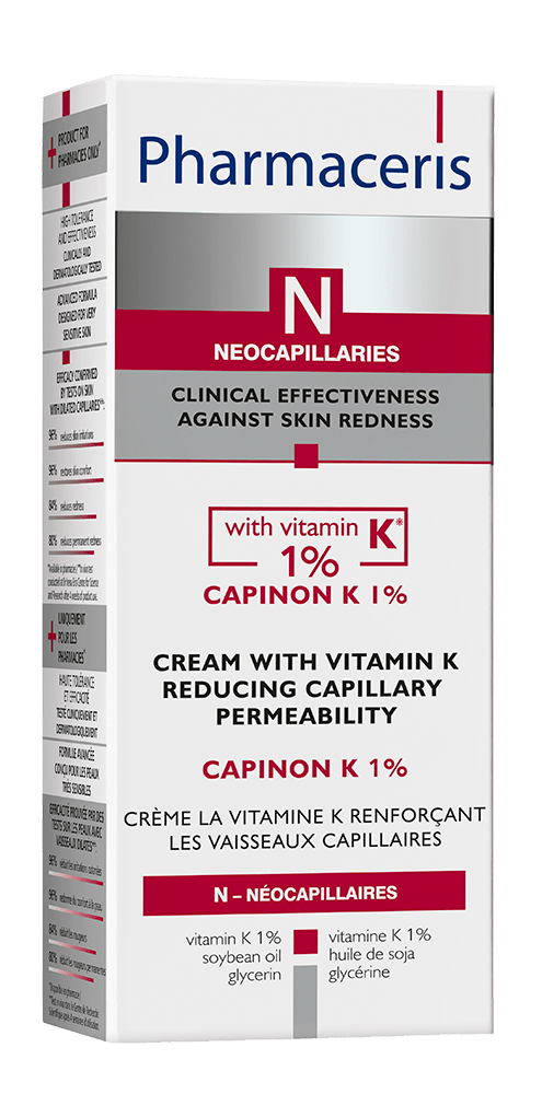 Produktet indeholder 1 % K-vitamin, som hurtigt lindrer og reducerer rødme samt reducerer synligheden af forstørrede blodkar.