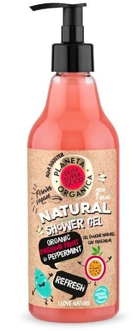 Natural Organic Passionfruit & Peppermint Shower Gel fra Planeta Organica er den perfekte måde at forkæle din hud på under bruseren.