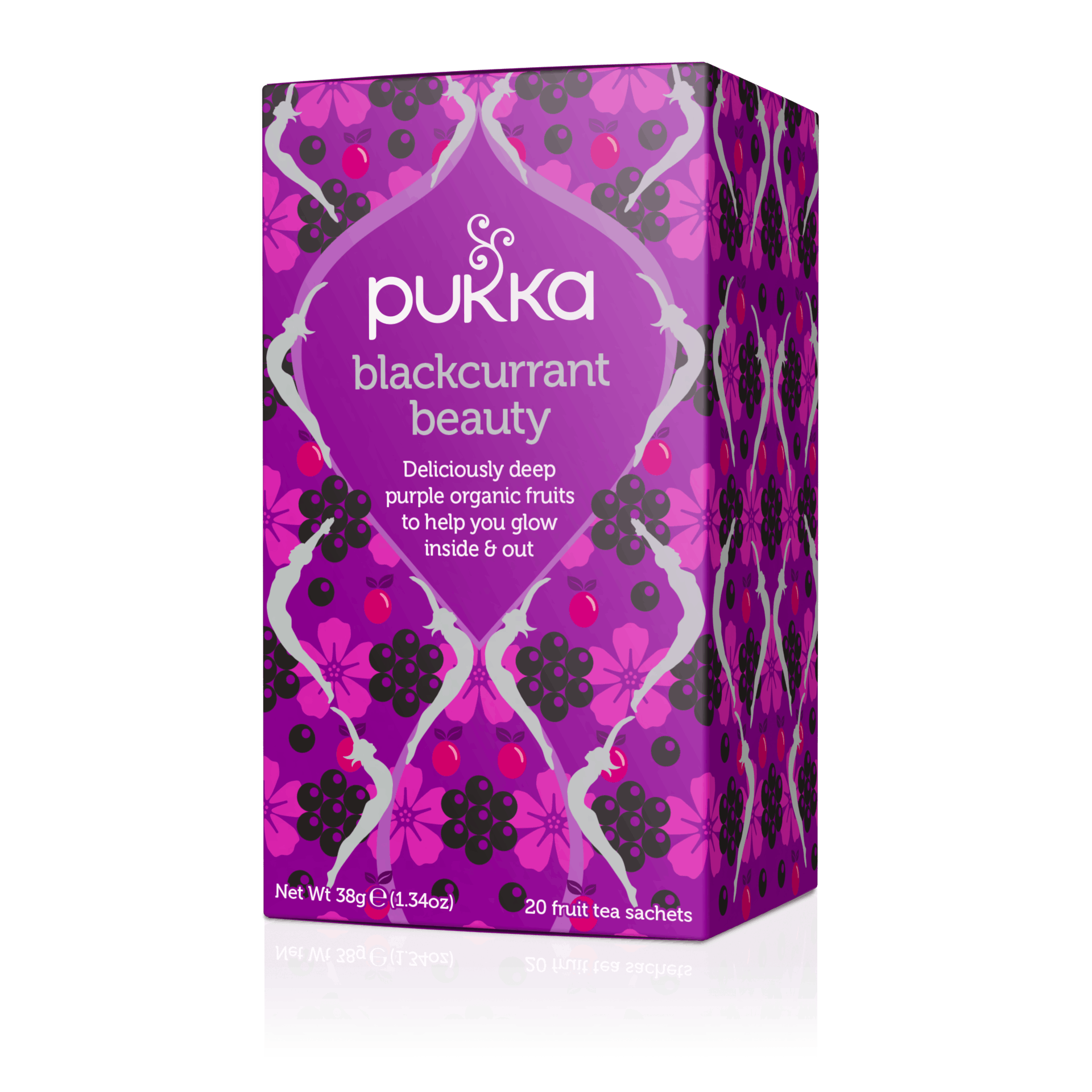 Blackcurrant Beauty Tea Øko er en lækker te fra det anerkendte mærke Pukka.