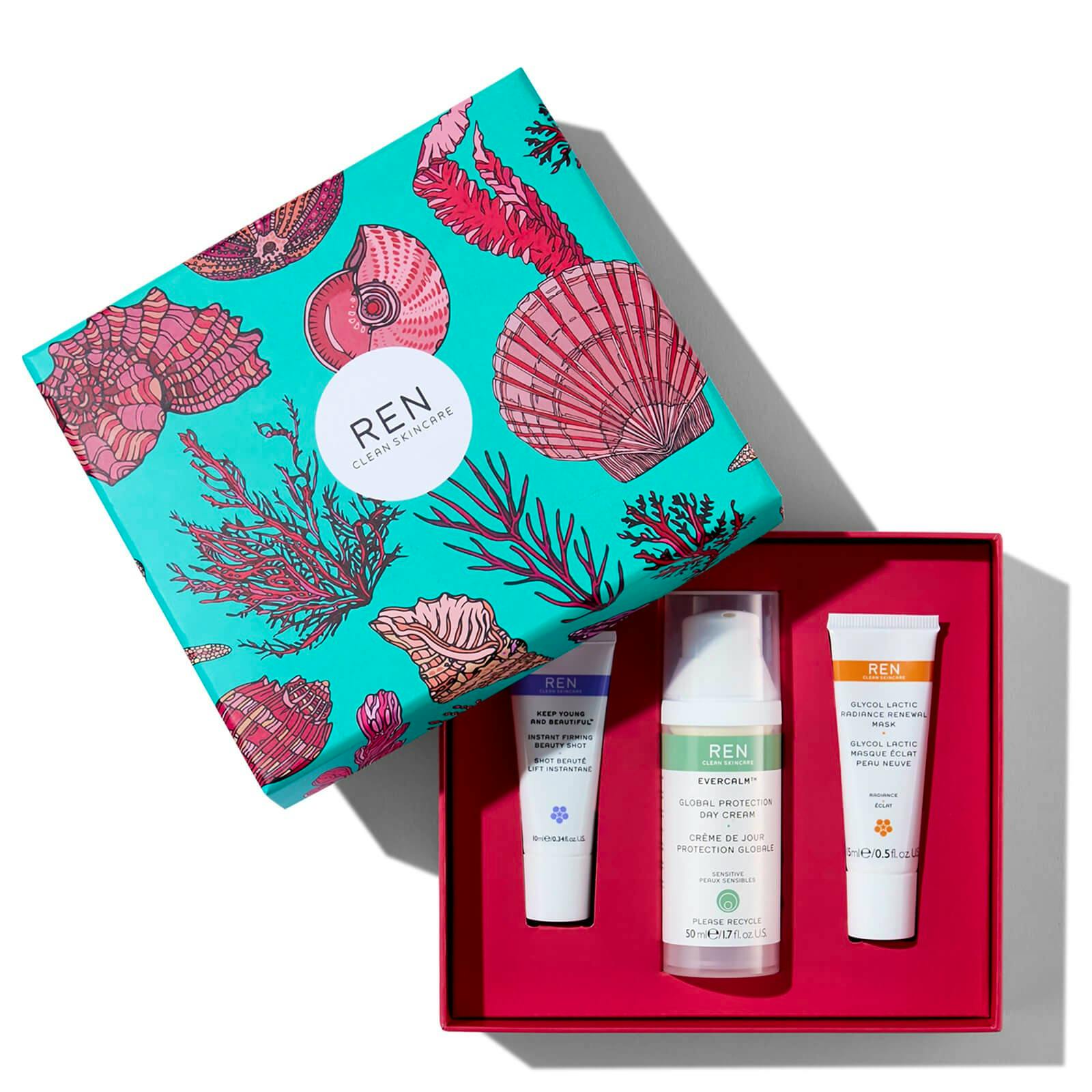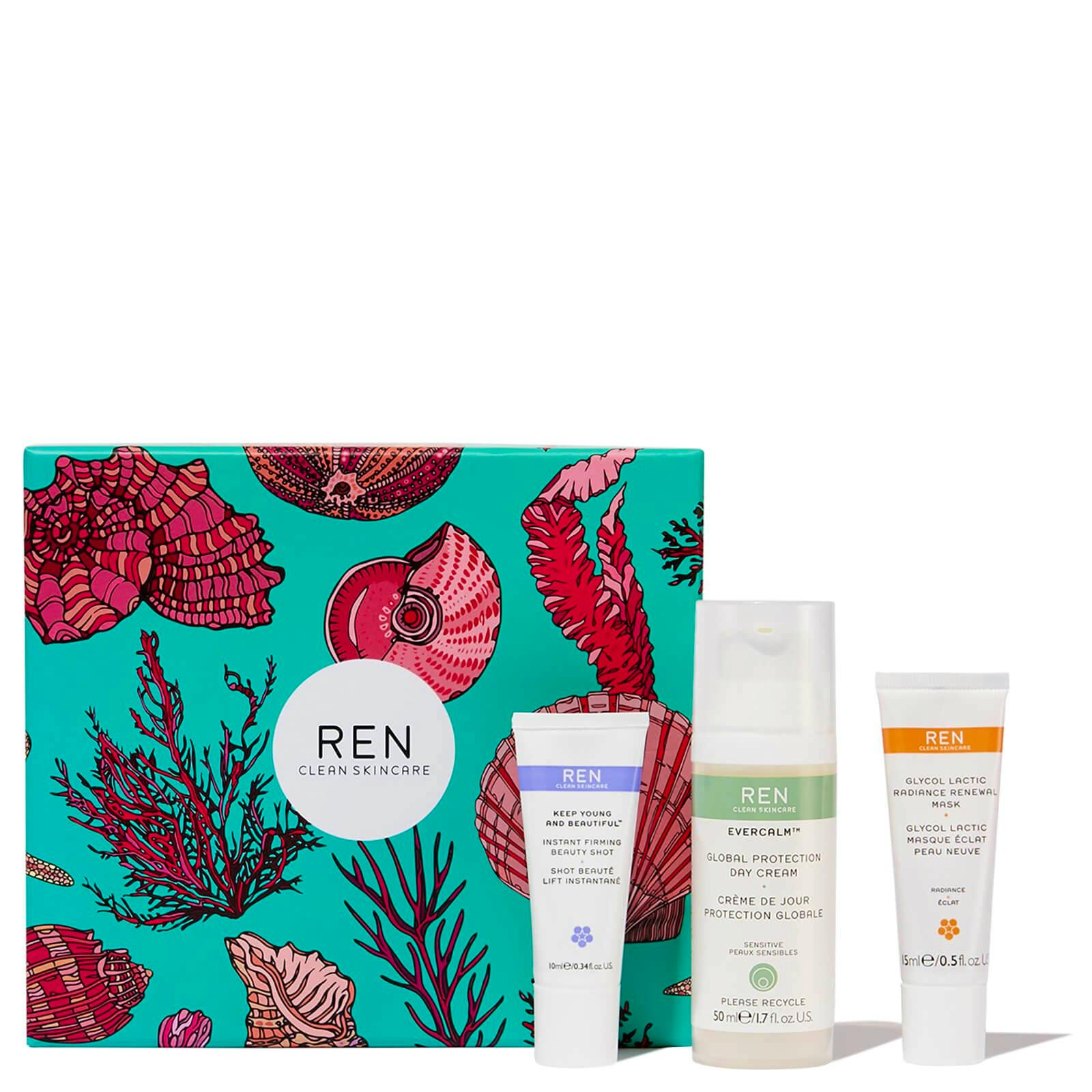 Med dette sæt får du 3 fantastiske og uundværlige hudplejeprodukter fra REN. Sættet indeholder 1 Keep Young And Beautiful Instant Firming Beauty Shot på 10 ml, som er en serum, der udglatter huden, opstrammer den og fugter den dybt.