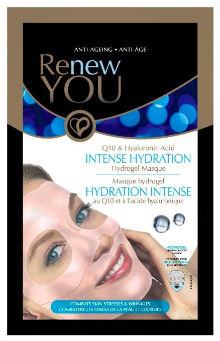 Renew You Intense Hydration Anti-Ageing Face Mask er en sheetmaske, der indeholder den kendte antiage-ingrediens Q10 og hyaluronsyre, som fornyer hudens overflade og udfylder rynker, samt fine linier i ansigtet.