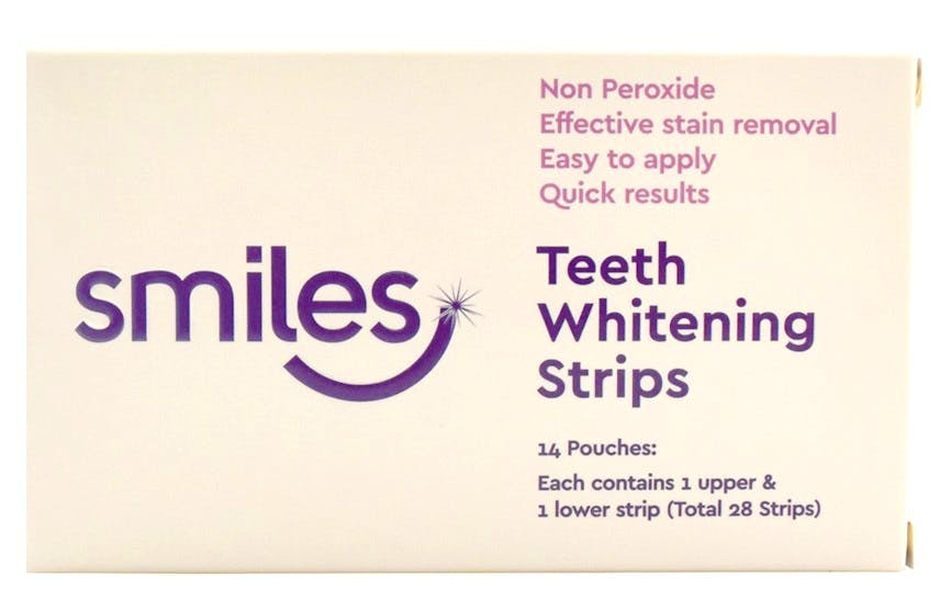 Smiles Teeth Whitening Strips er 28 praktiske tandstrimler, der hjælper mod misfarvning og pletter på tænderne.