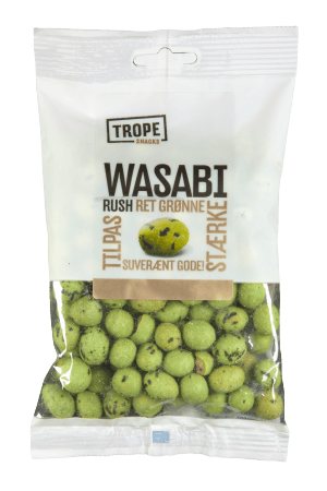 Wasabi Pähkinät - En lækker snack til dig, der elsker spændende smagsoplevelser! Denne snack fra mærket Trope er perfekt til dig, der ønsker at tilføje lidt ekstra krydderi til din daglige snackrutine.