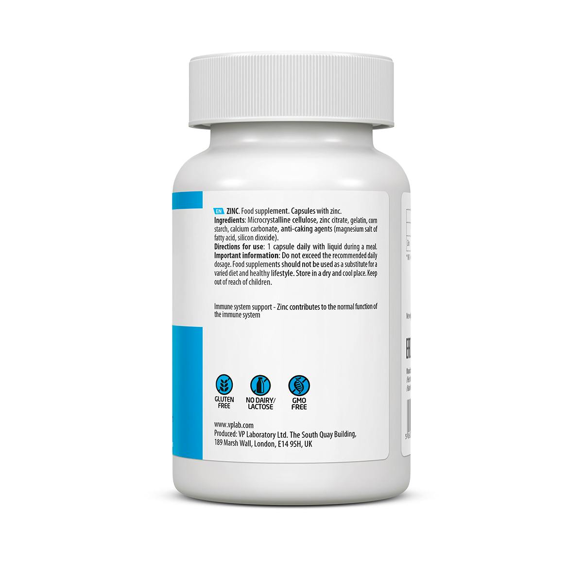 Microcrystalline cellulose, zinc citrate, gelatin, corn starch, anti-caking agents (magnesium stearate, silicon dioxide)