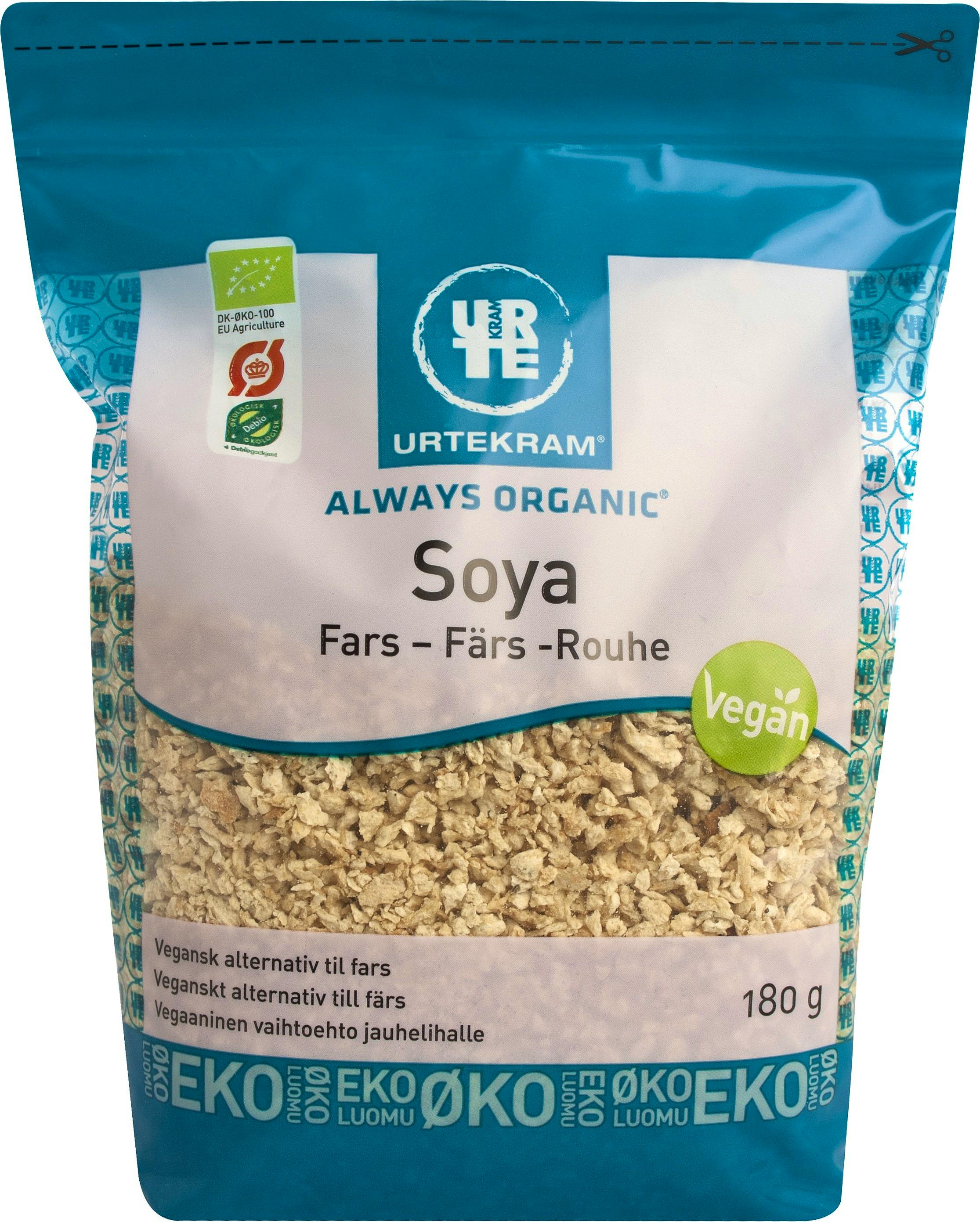 Urtekram Økologisk Soya Fars indeholder 180 g. Denne sojafars er fremstillet af økologiske sojabønner, som er presset for at adskille oliedelen. Farsen er herefter produceret af den proteinrige mel, så du kan bruge det til madlavning. Anvend Urtekrams Soya Fars som køderstatning til frikadeller, bolognese eller burgere, så du får en autentisk kulinarisk oplevelse.