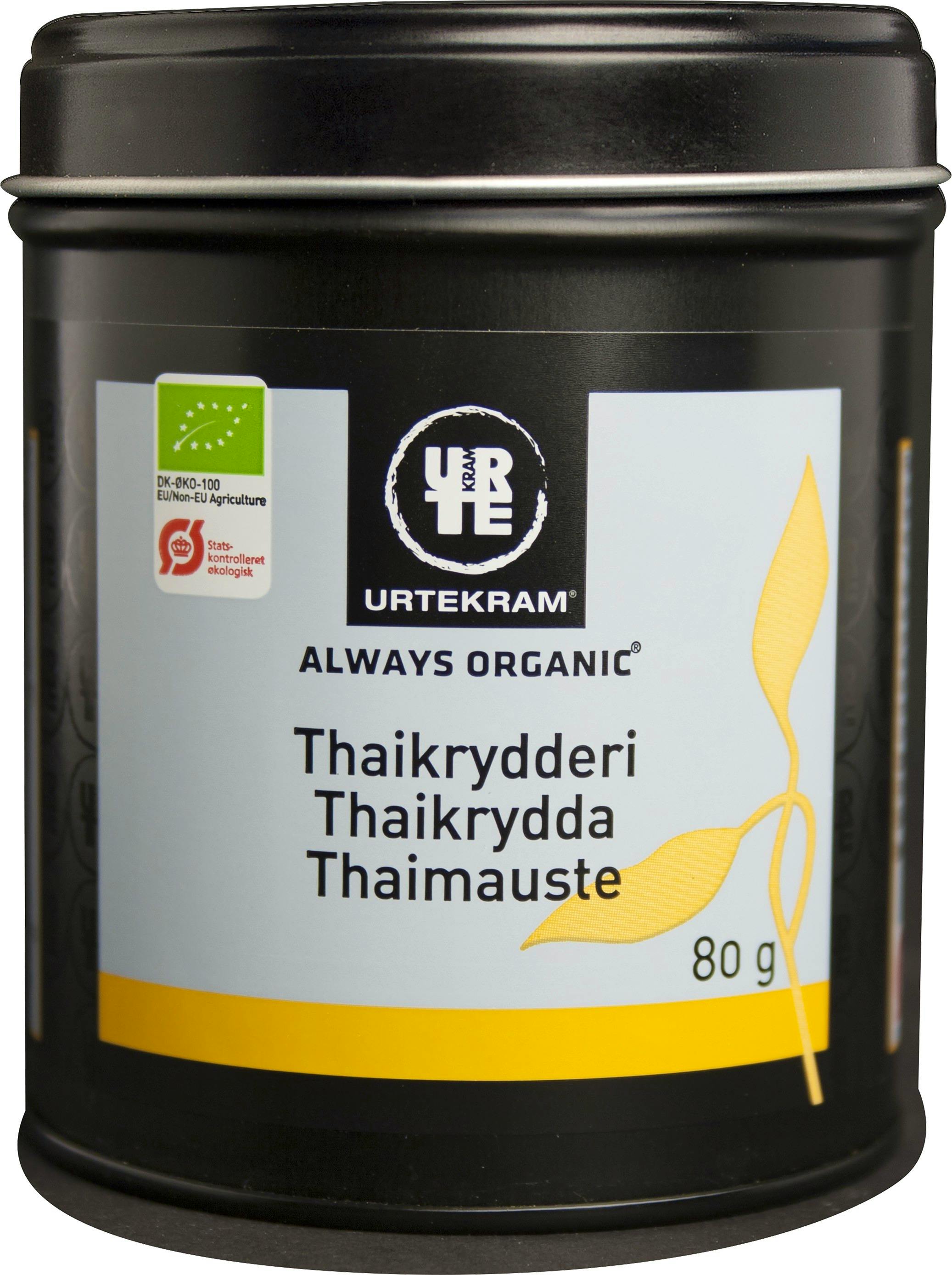 Bring Thailand ind i dit køkken med denne lækre krydderblanding fra Urtekram. Urtekram Thaikrydderi Økø giver lige præcis den friske, krydrede kant som er så populær. Kan bruges i klassiske wokretter eller til at krydre kød eller dressing. Udviklet i samarbejde med kostvejleder Lene Hansson.