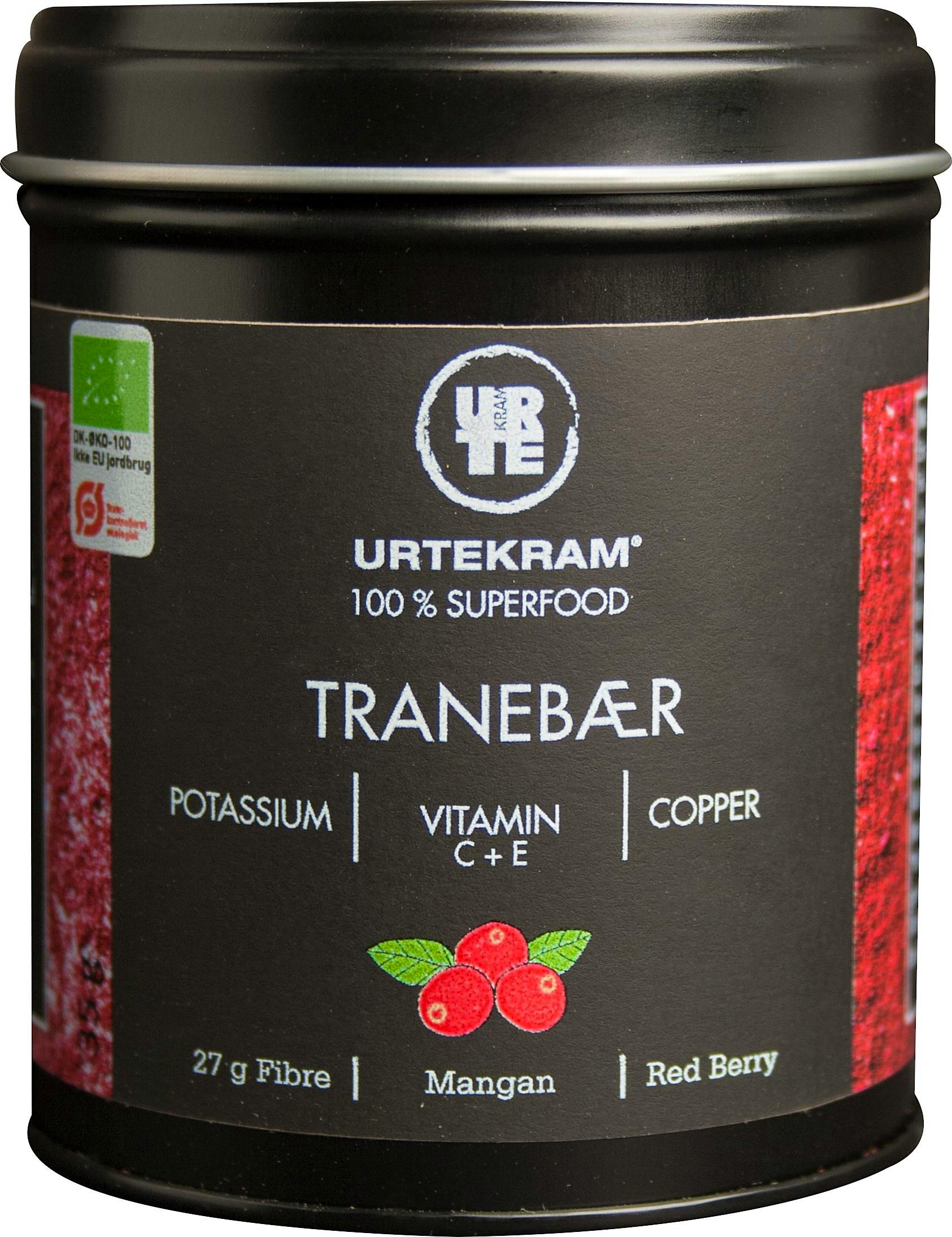 Tranebær Pulver Øko fra Urtekram. Tranebær kender vi alle sammen fra en dejlig gåtur skoven, hvor man selv plukker og tager dem med hjem. Disse bær fryses og herefter pulveriseres de, for til sidst at være en lækker smagsgiver til hverdagen. For at booste din morgen, så put 1 tsk i din smootie eller skyr. Så er du sikker på, at du starter dagen på den bedst tænkelige måde. Indeholder 35 gram.