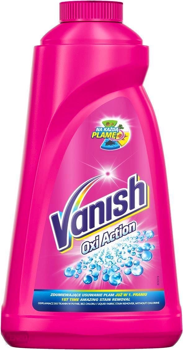 Vanish Oxi Action Pink Liquid Stain Remover er et flydende vaskemiddel, der lover at fjerne pletter allerede første gang. Vanish Oxi Action Pink Liquid Stain Remover indeholder aktiv ilt, der løfter selv de mest vanskelige pletter væk fra tøjet. Desuden er den parfumefri og svanemærket. Vanish Oxi Action Pink Liquid Stain Remover kan påføres direkte på pletten som forbehandling og/ eller bruges som vaskemiddel til både kulørt og hvidt tøj. Denne Vanish Oxi Action Pink Liquid Stain Remover indeholder 1000 ml.