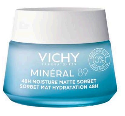 48H Moisture Matte Sorbet fra Vichy er en forfriskende fugtighedscreme, der giver langvarig hydrering samtidig med, at den bevarer en mat overflade.