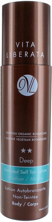 Vita Liberata Deep Body Self Tan er en fantastisk fugtgivende lotion til kroppen. Ikke mindst fugtgiver denne lotion din hud, den giver også en subtil glød. Body Self Tan er perfekt til tør og følsom hud. Vita Liberata bruger organiske ekstrakter og naturlige ingredienser, dermed indeholder denne lotion ikke duft eller alkohol. Self Tan giver en jævn og flot tan som holder op til 4 til 7 dage. Vi anbefaler at man bruger Deep Body Self Tan regelmæssigt for at opretholde gløden.