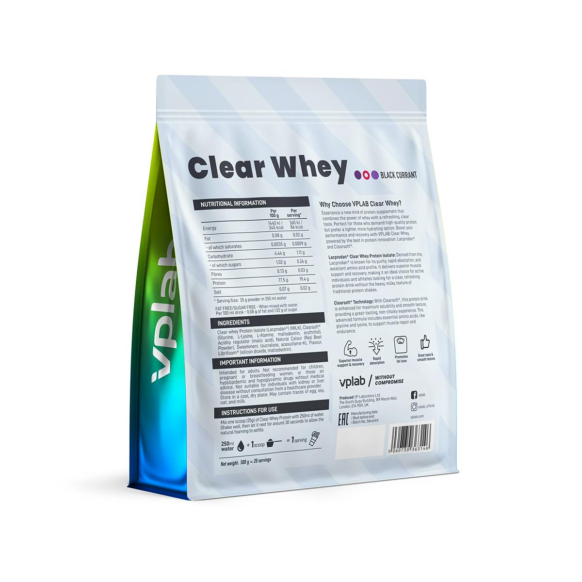 Vplab Clear Whey Black Currant Proteinpulver 500 g.