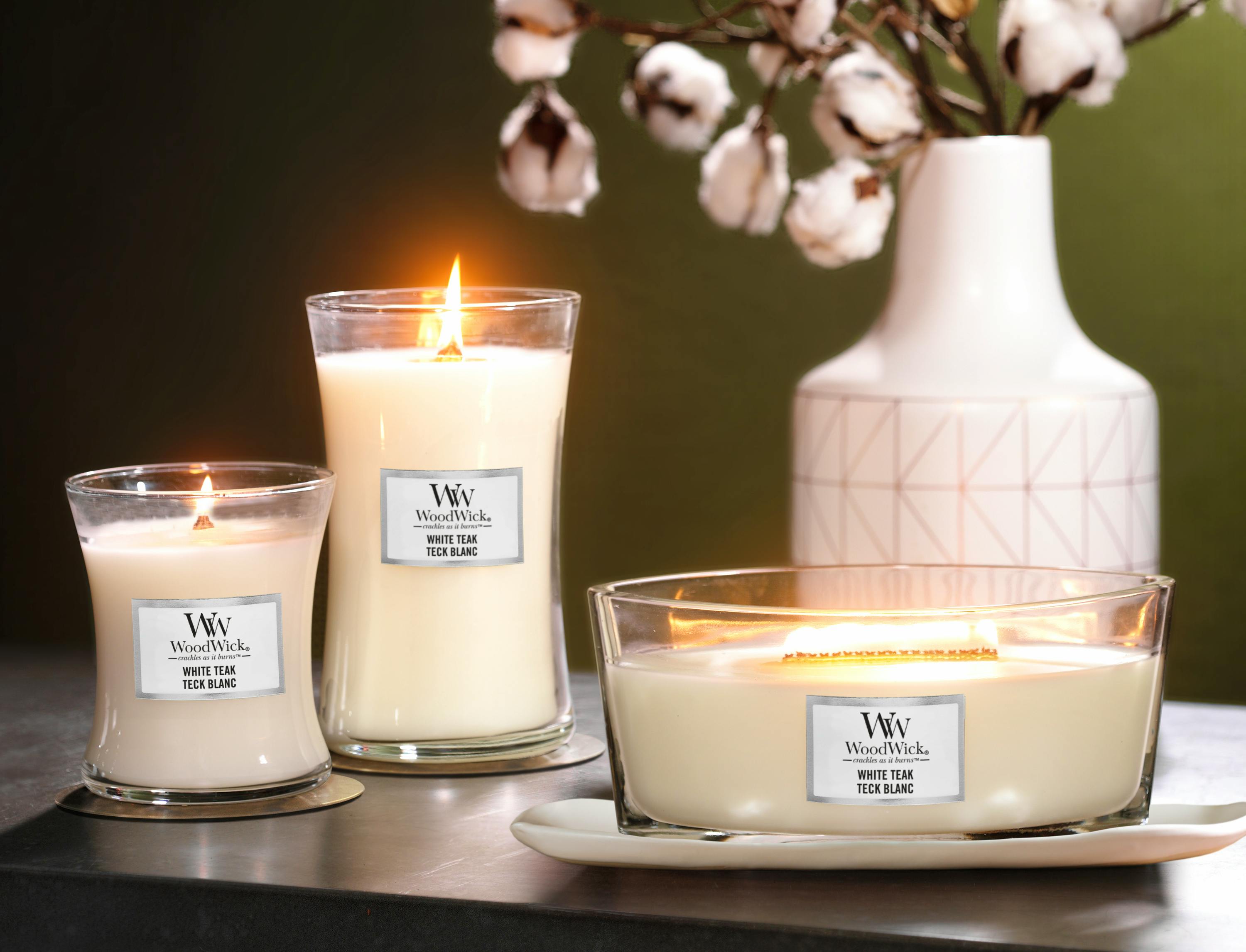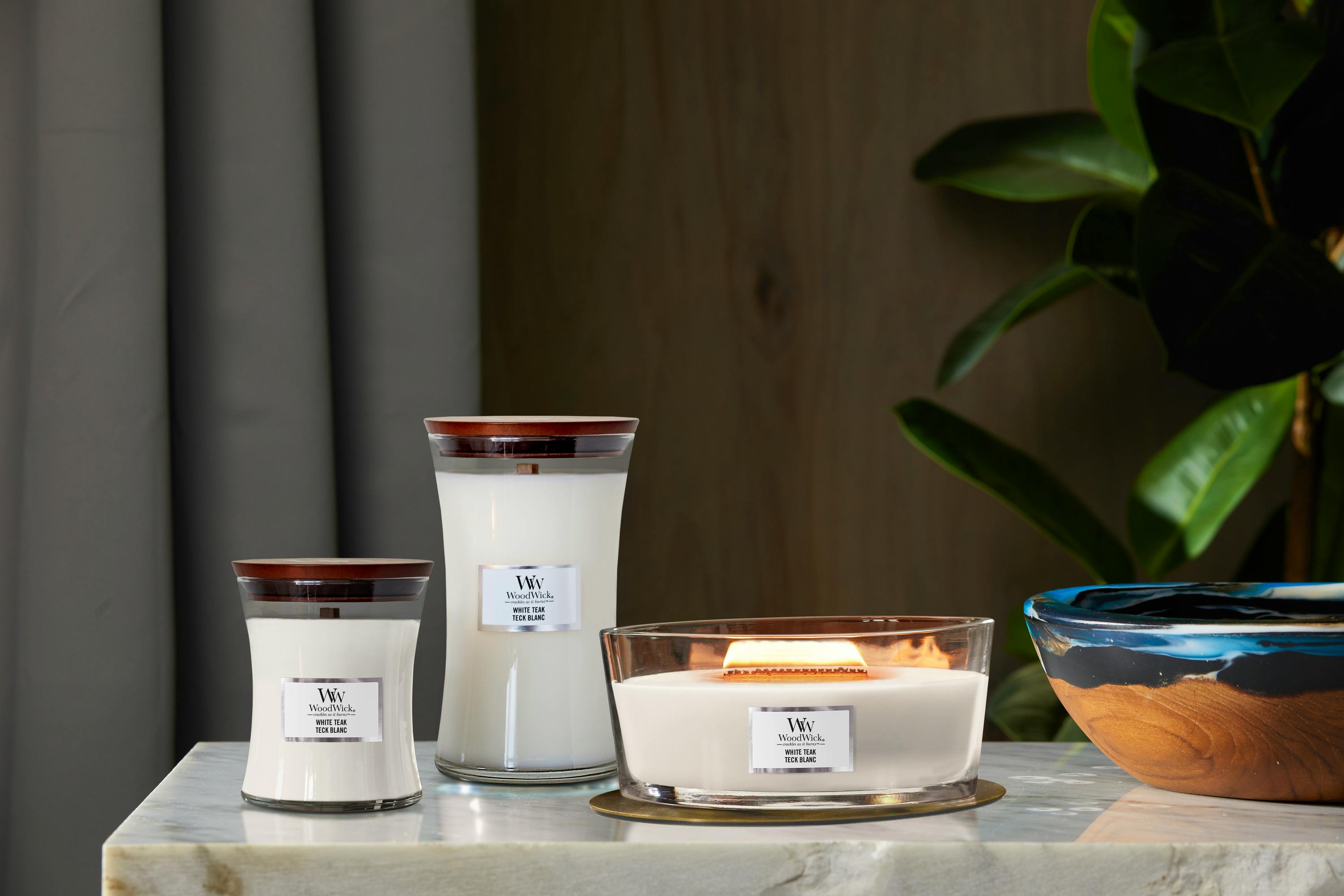 oodWick White Teak Ellipse er en fortryllende og forfriskende duftoplevelse, der forvandler dit hjem med en subtil elegance.