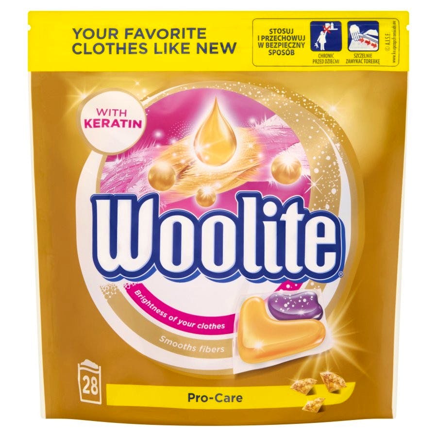 Woolite Pro-Care Keratin Capsules er vaskekapsler til dit vasketøj. Woolite Pro-Care Keratin Capsules beskytter farverne i dit tøj mod at falme i vask og glatter fibrene, så dit tøj holder længere, selv ved hyppig vask. Brug 1 kapsel pr. vask og få rent vasketøj som beholder farverne.