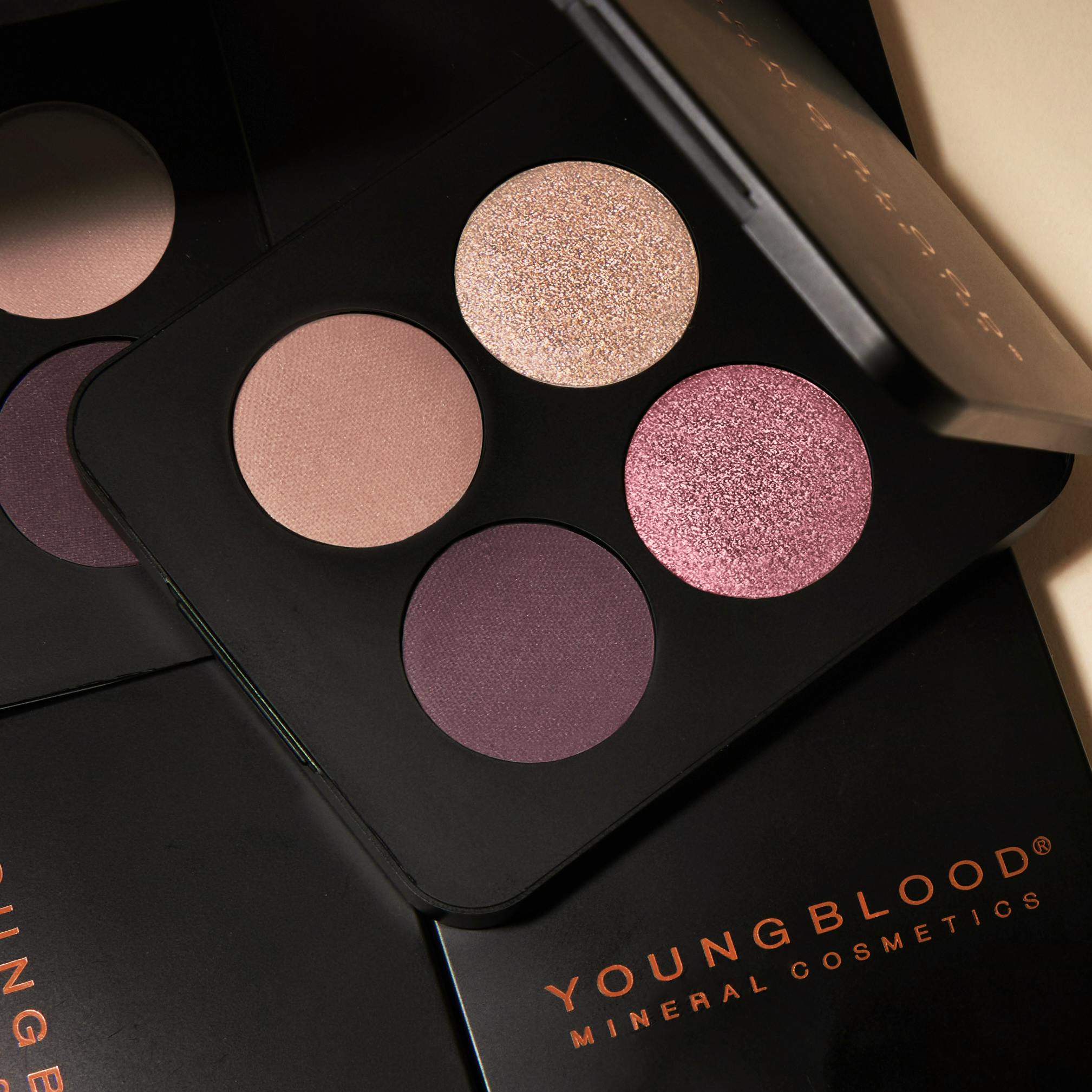 Pressed Mineral Eyeshadow Quad Garden Party fra Youngblood er en alsidig øjenskyggepalette, der er skabt til at fremhæve din øjenmakeup med en harmonisk farvesammensætning.